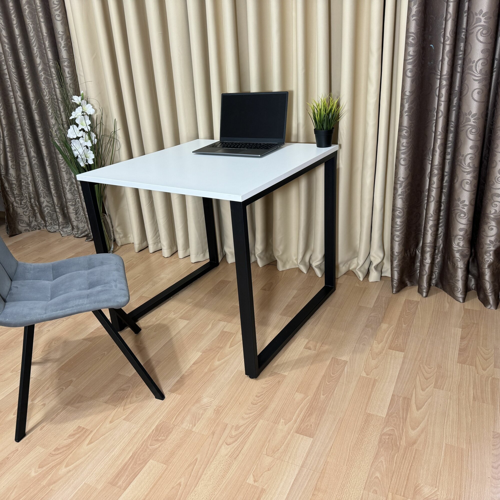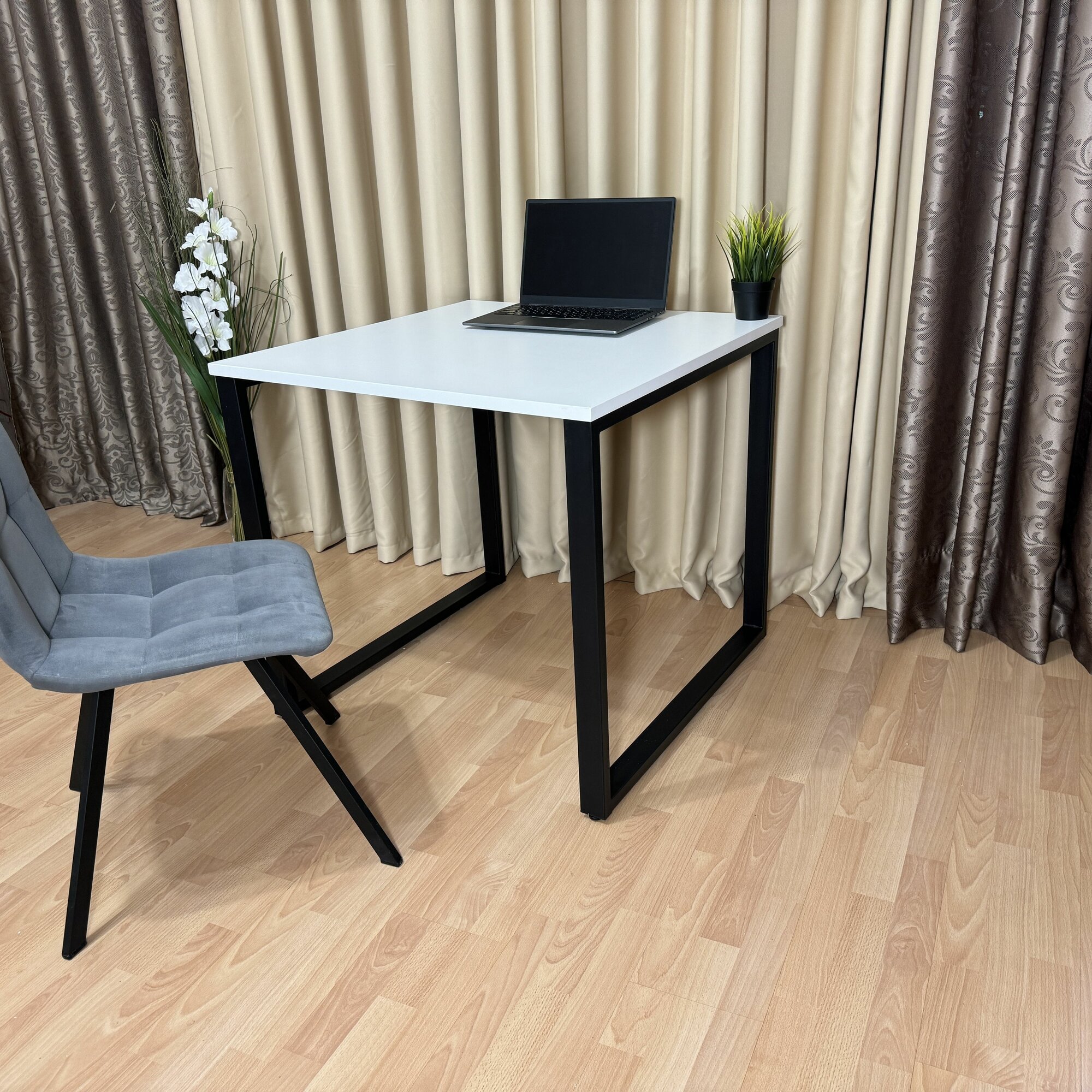 Компьютерный стол лофт 80*80 см. Столешница Белая 22 мм. Чёрные ножки