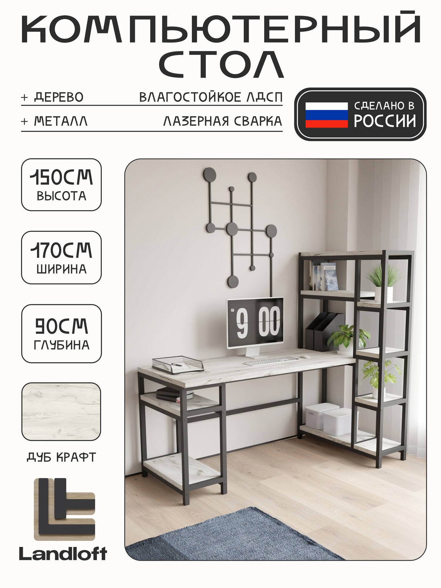 Компьютерный стол Landloft Гордон Loft, угловой, цвет дуб крафт белый: сравнение цен, характеристики, фото, актуальное наличие и цены.