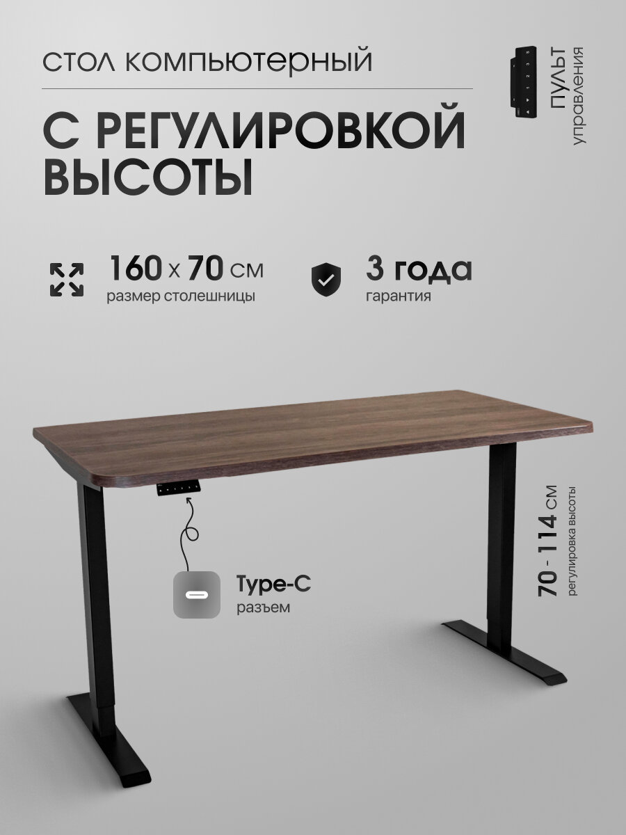 Компьютерный стол LuxAlto с регулировкой высоты SRF2J, ЛДСП Дуб коричневый 160х70 см, черное подстолье: сравнение цен, характеристики, фото, актуальное наличие и цены.