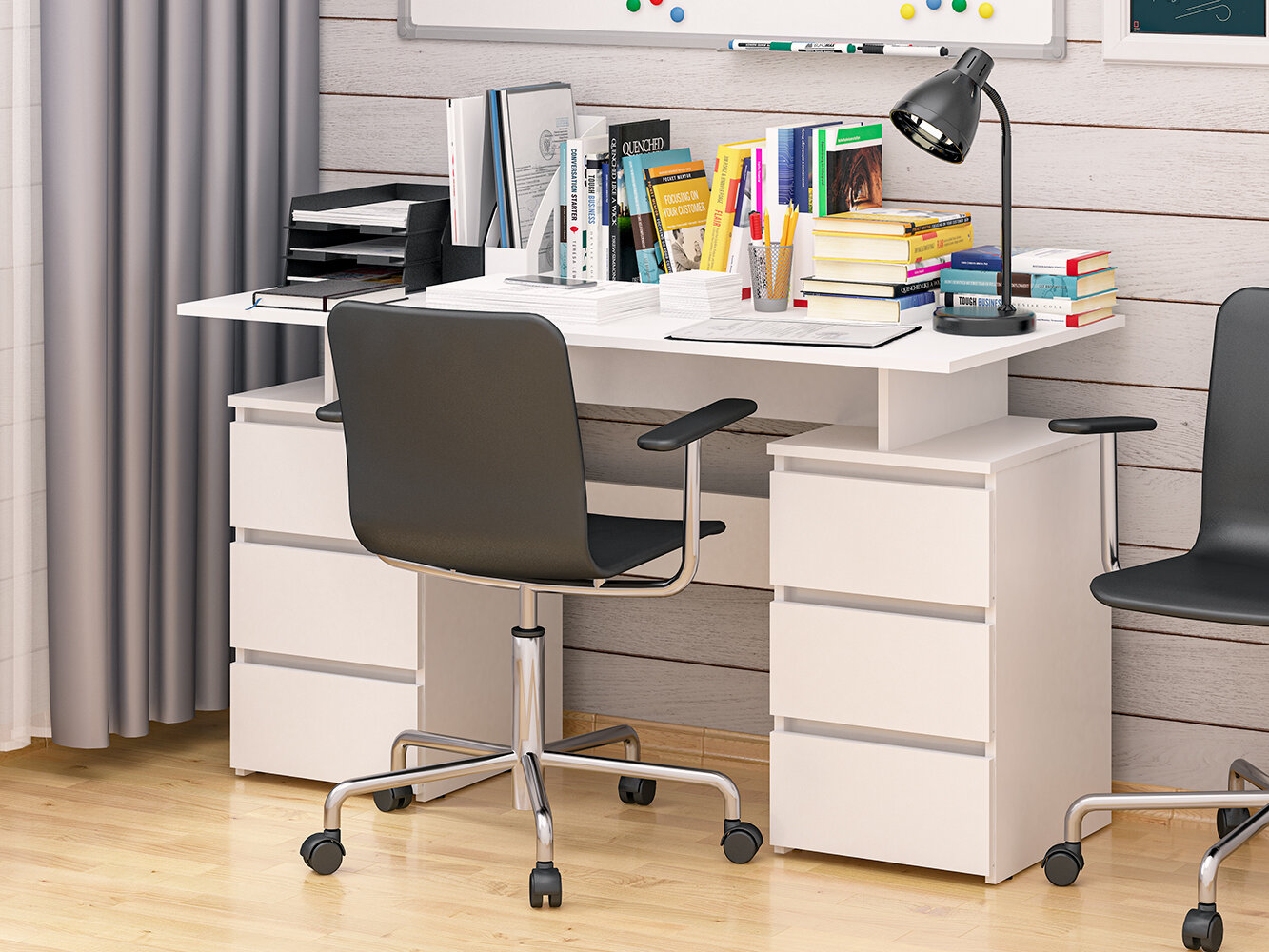 Компьютерный стол «МК Пирамида» СК-65, с 2-мя тумбами, 6 ящиков, цвет белый/белый, 75х130х60 см: сравнение цен, характеристики, фото, актуальное наличие и цены.