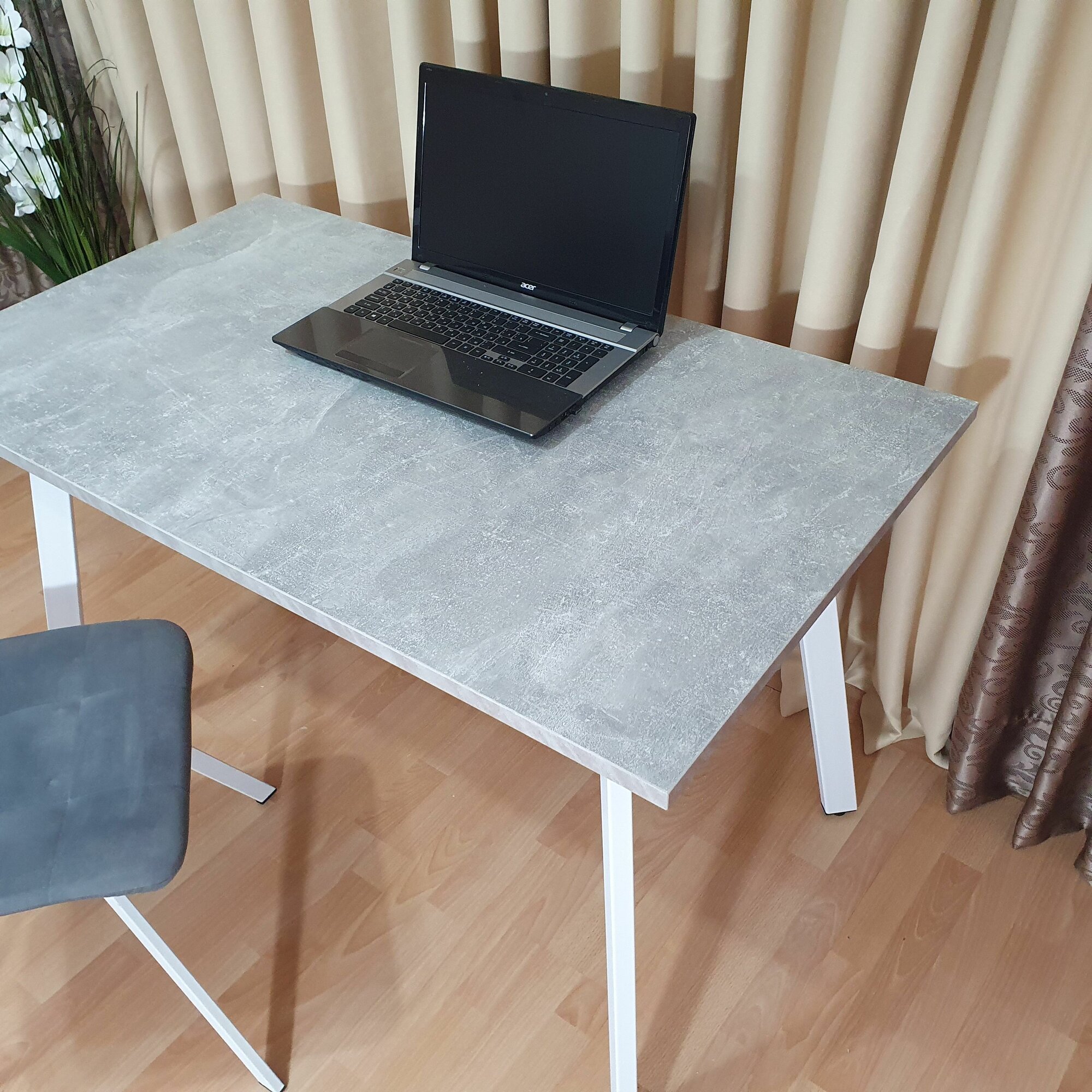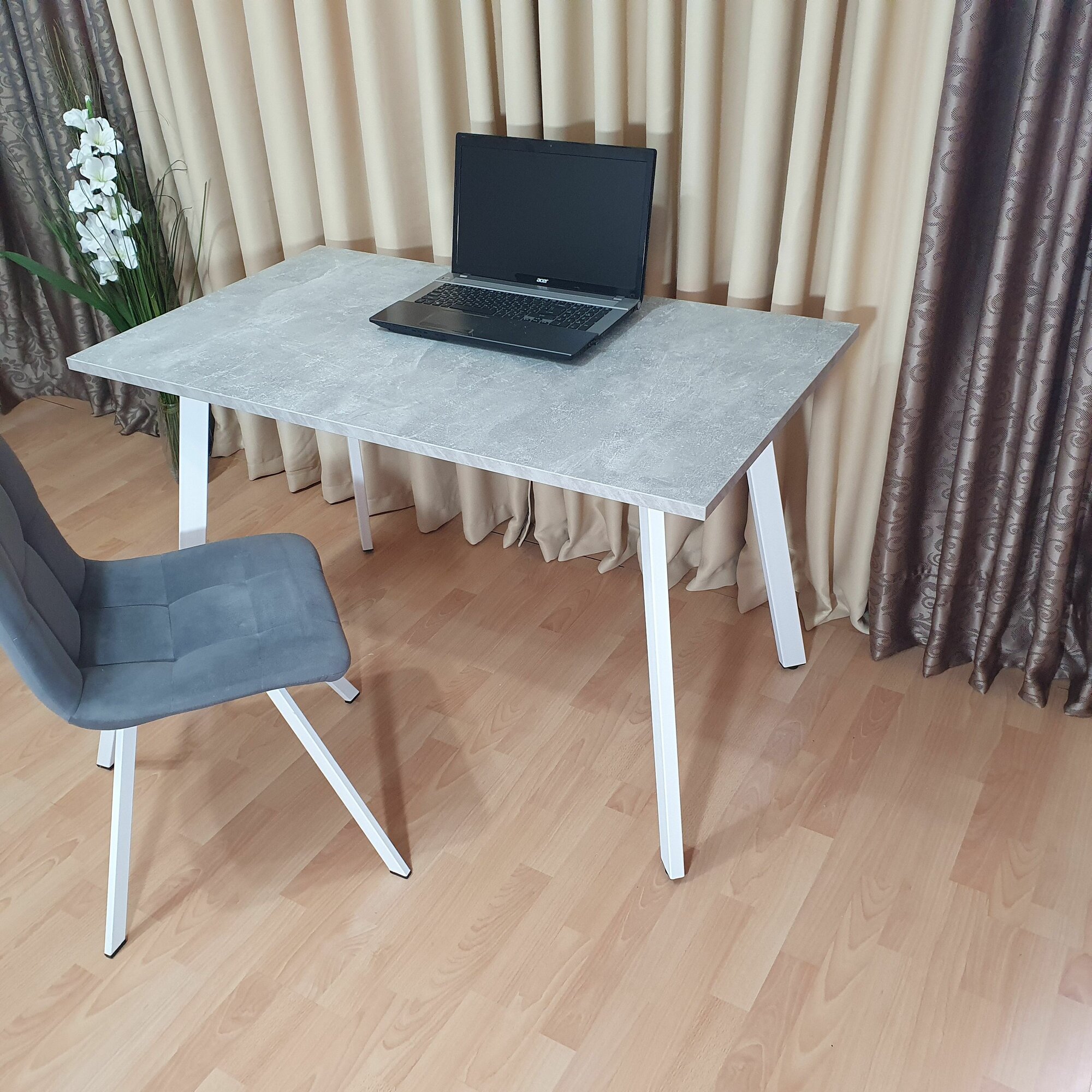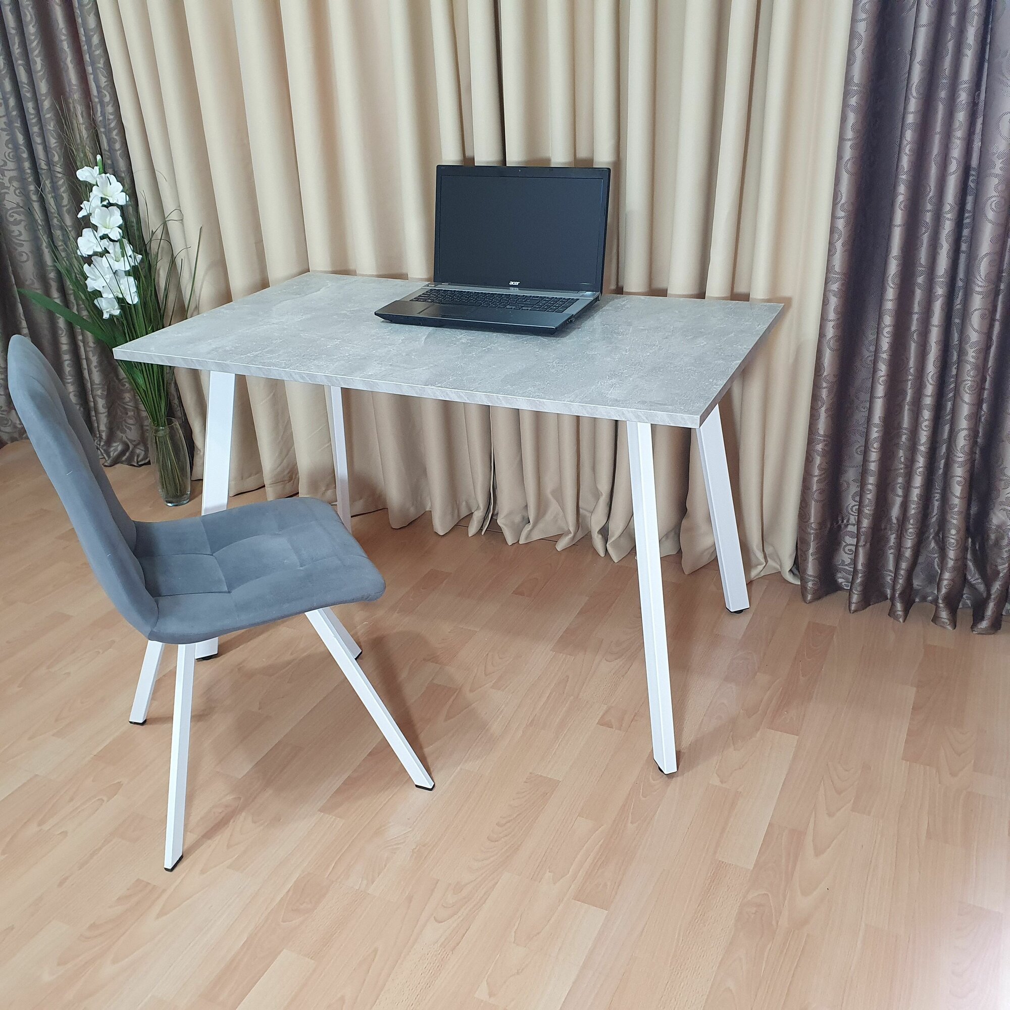 Компьютерный стол Ник 120*70 см. Бетон светлый. Белые ножки
