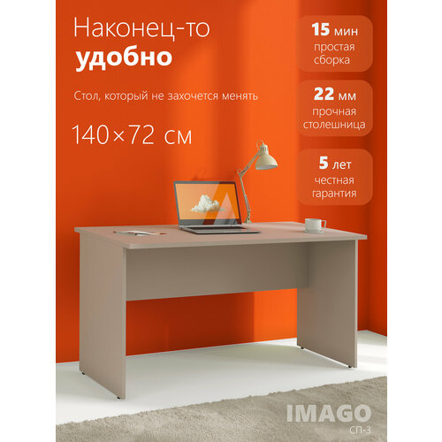 Большой компьютерный стол SKYLAND IMAGO СП-3 – удобное и актуальное решение для оснащения рабочего пространства. Сдержанный дизайн без излишеств, прочность и надежность делают его идеальным вариантом для современного офиса или домашнего интерьера. Письменный стол универсален, он прекрасно подойдет для работы как с документами, так и компьютером: широкая столешница позволяет разместить на ней монитор, клавиатуру с мышкой, оргтехнику и другие предметы, необходимые для работы. Кроме того, офисный стол очень практичный: высококачественное ламинированное покрытие устойчиво к повреждениям и легко очищается от любых видов бытовых загрязнений. А разнообразие цветовых решений позволяет выбрать подходящий вариант для любого интерьера – рабочий стол изготавливается в цветах: белый, груша, орех, ясень шимо, венге магия, клен, венге магия/металлик, клен/металлик, мокачино. Рабочий стол оснащен солидной столешницей 22 мм и прочными опорами 18 мм из ЛДСП. Противоударная кромка ПВХ толщиной 2 мм защищает торцы письменного стола от повреждений. А регулируемые по высоте опоры обеспечат устойчивость на неровном полу.