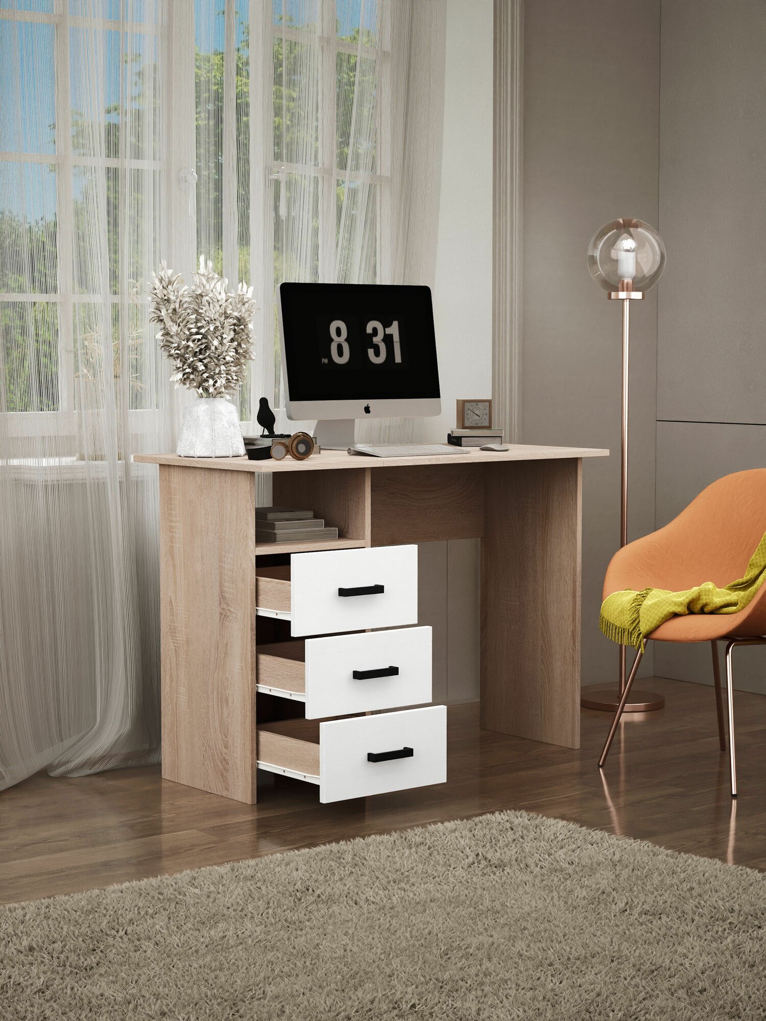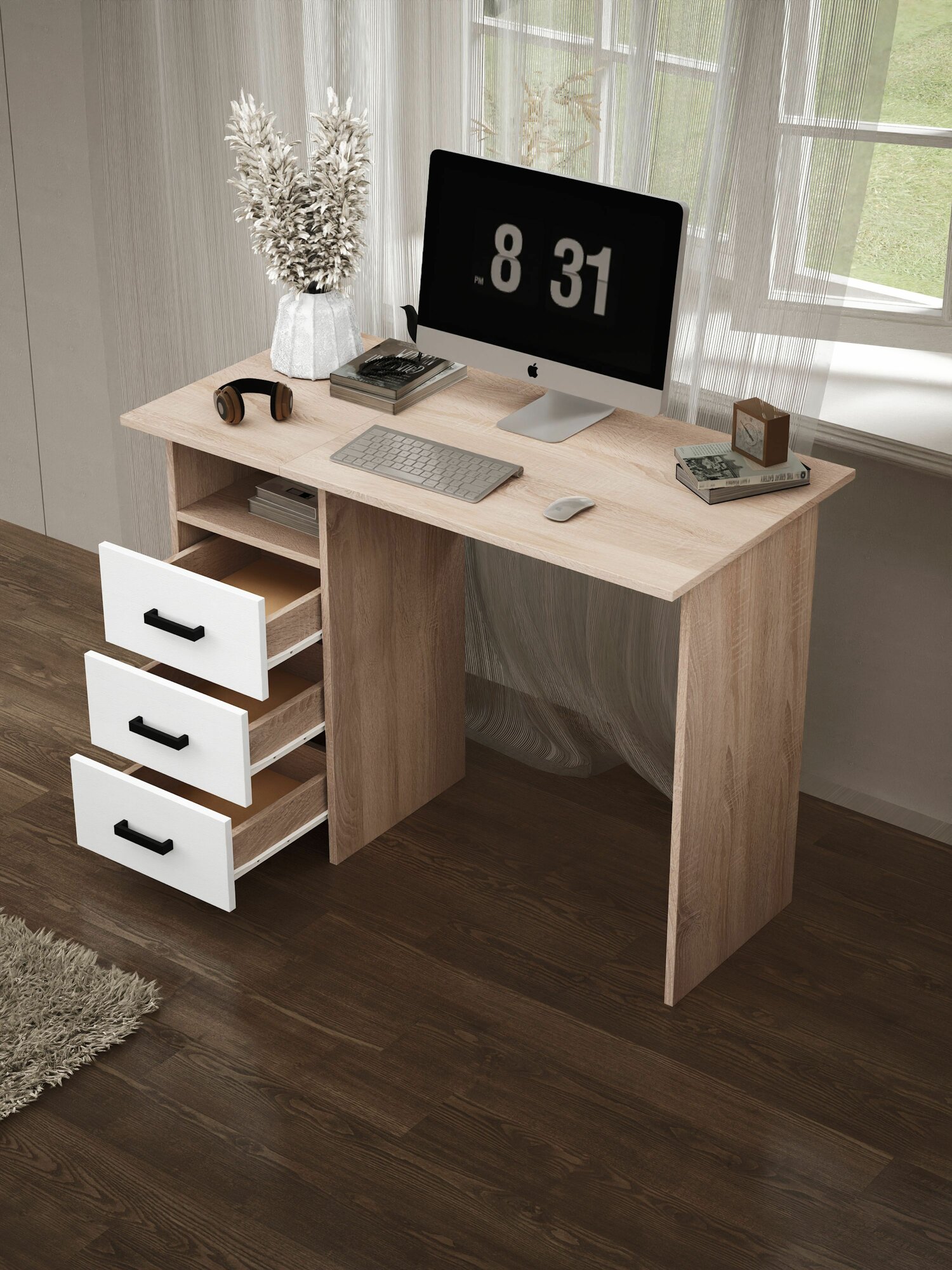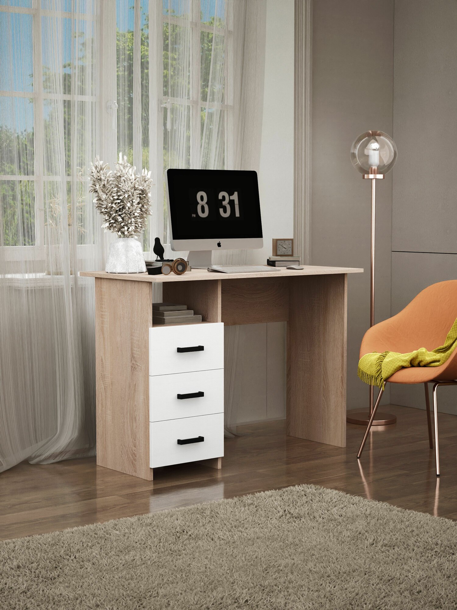 Компьютерный стол Profimebel Витто-48, дуб сонома/белый, ЛДСП, 3 ящика, 1 полка: сравнение цен, характеристики, фото, актуальное наличие и цены.