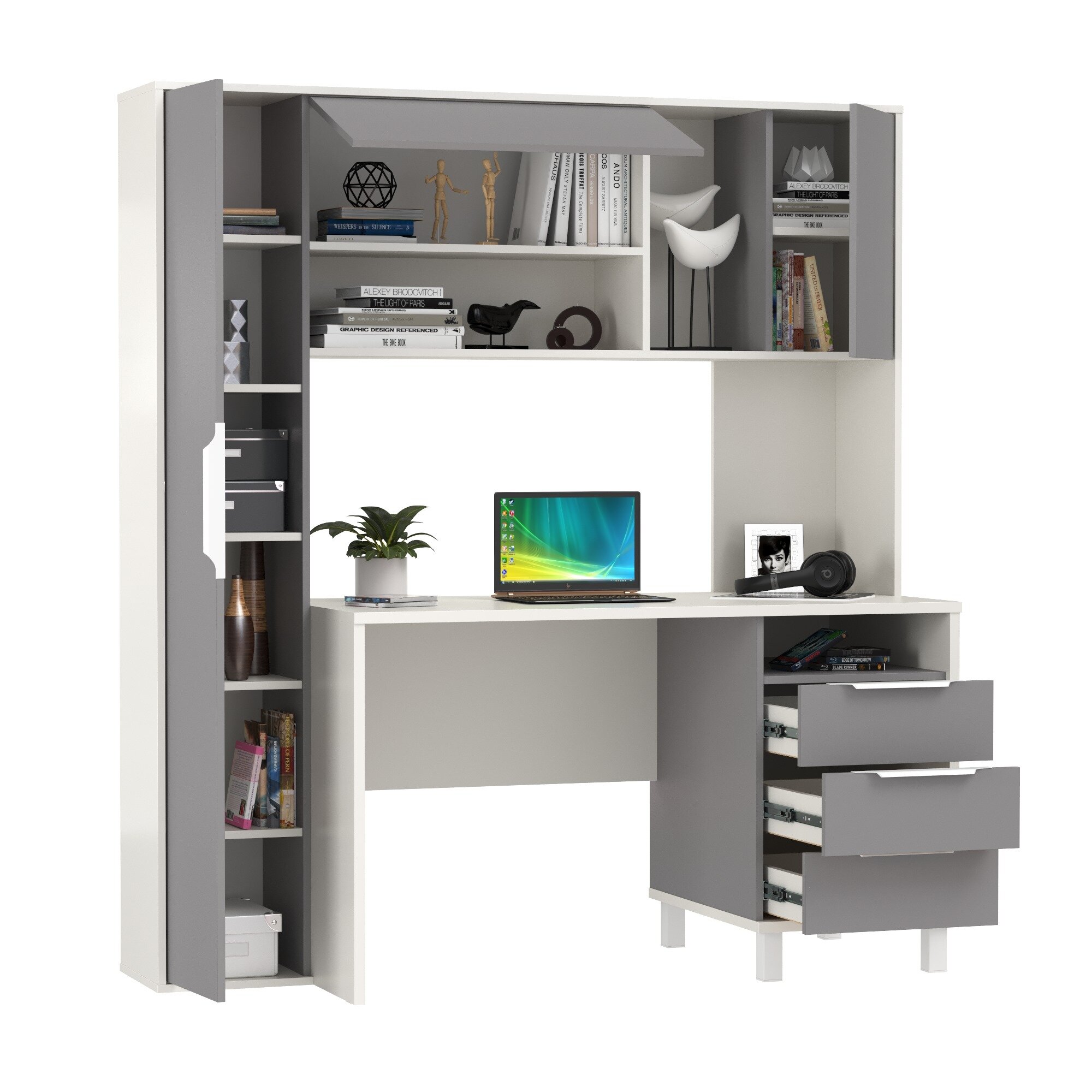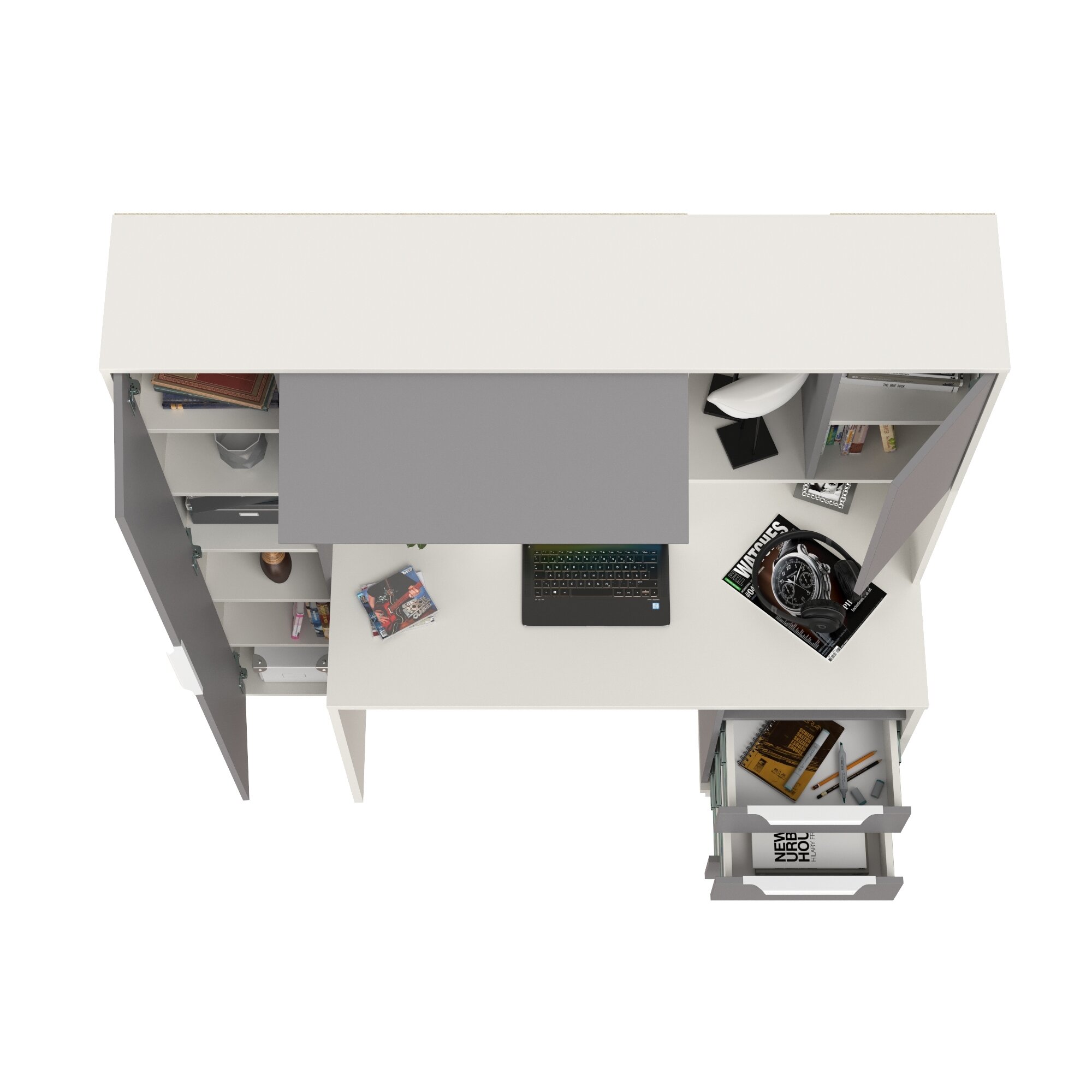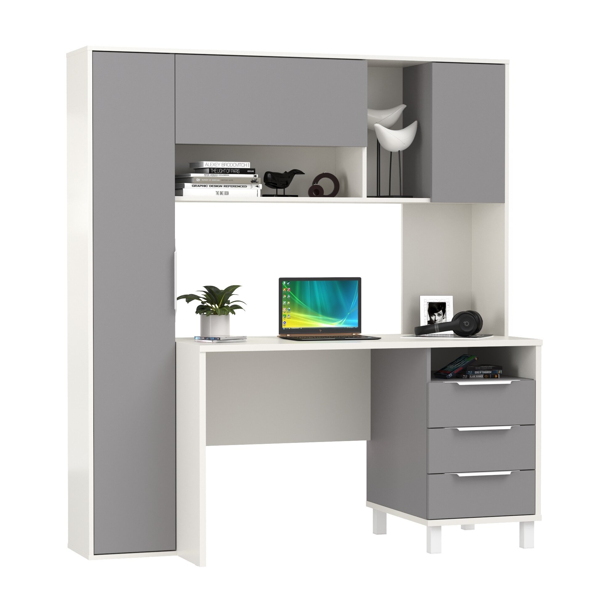 Купить Компьютерный стол рабочий Mobi Комфорт 12.95N цвет белый премиум/серый шифер с доставкой по всей России.