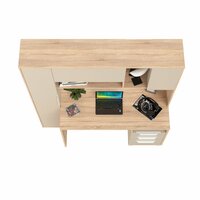 тумба расположена с правой стороны стола, с левой стороны находится пенал с глухой распашной дверкой и пятью полками внутри, поставляется в разобранном виде; поставляется в разобранном виде