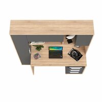 тумба расположена с правой стороны стола, с левой стороны находится пенал с глухой распашной дверкой и пятью полками внутри, поставляется в разобранном виде; поставляется в разобранном виде