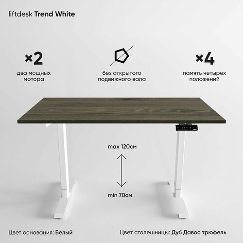 Компьютерный стол с подъемным механизмом регулируемый по высоте 2-х моторный liftdesk Trend Белый, Дуб Давос трюфель, ЛДСП Egger 138х68х2.5 см: сравнение цен, характеристики, фото, актуальное наличие и цены.