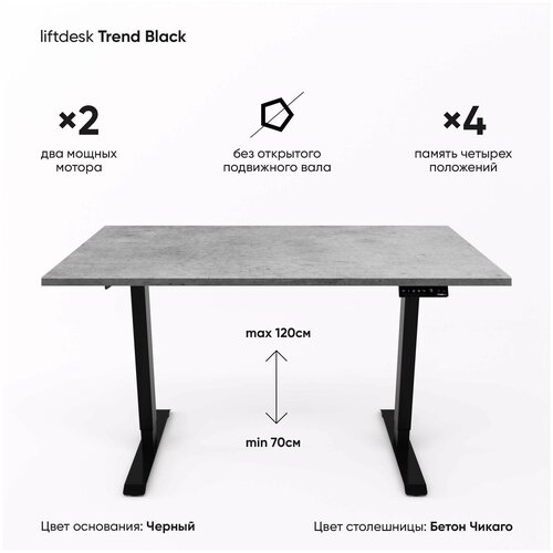Стол компьютерный с подъемным механизмом регулируемый по высоте 2-х моторный liftdesk Trend Черный, Бетон Чикаго, ЛДСП Egger 138х68х2.5 см: сравнение цен, характеристики, фото, актуальное наличие и цены.