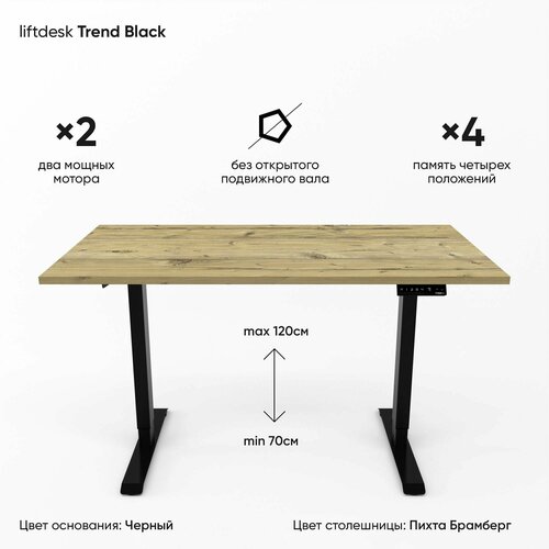 Стол компьютерный с подъемным механизмом регулируемый по высоте 2-х моторный liftdesk Trend Черный, Пихта Брамберг, ЛДСП Egger 138х68х2.5 см: сравнение цен, характеристики, фото, актуальное наличие и цены.