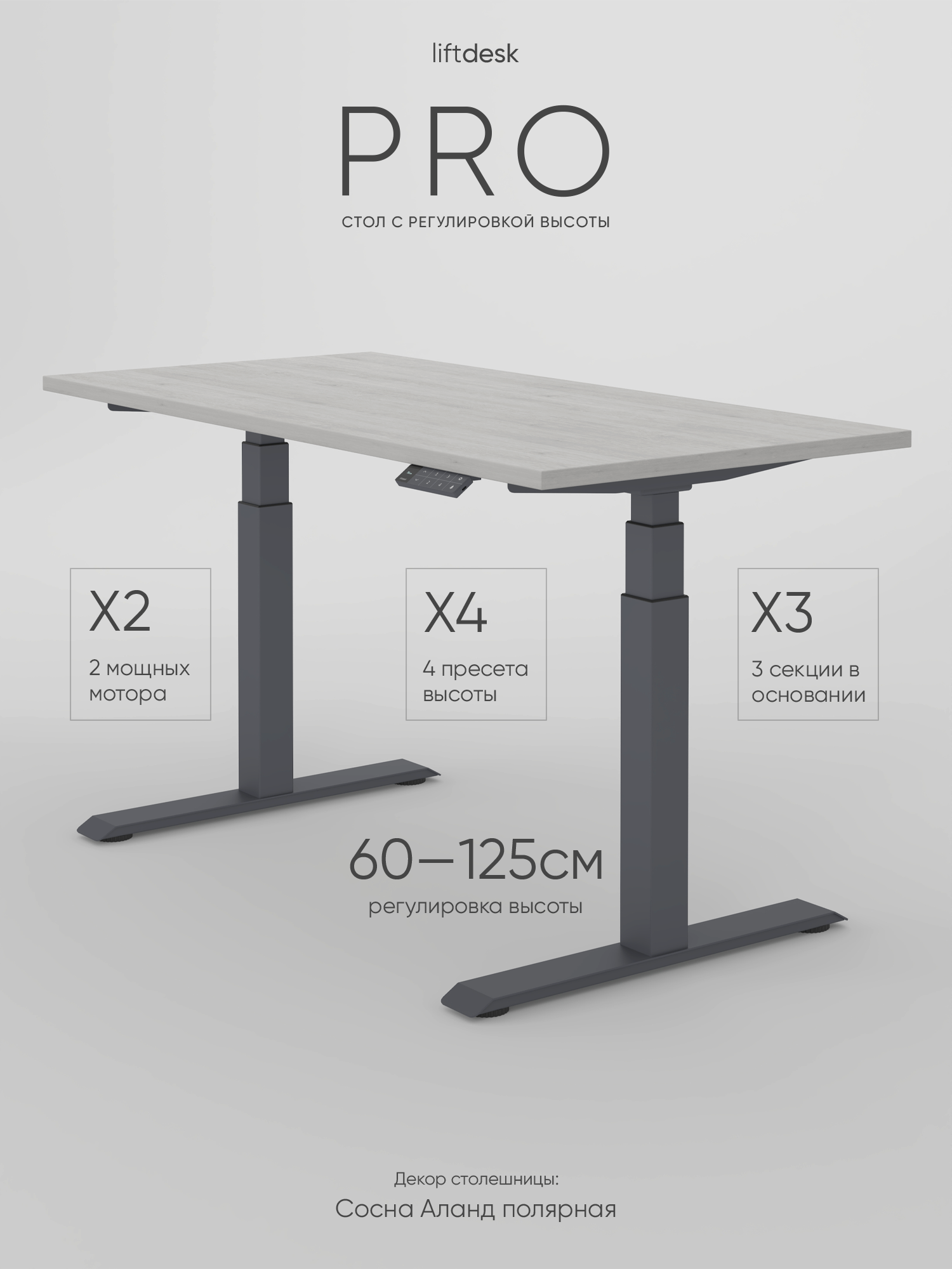 Компьютерный стол с подъемным механизмом регулируемый по высоте 2-х моторный liftdesk Pro Антрацит, Сосна Аланд полярная, ЛДСП Egger 138х68х2.5 см: сравнение цен, характеристики, фото, актуальное наличие и цены.