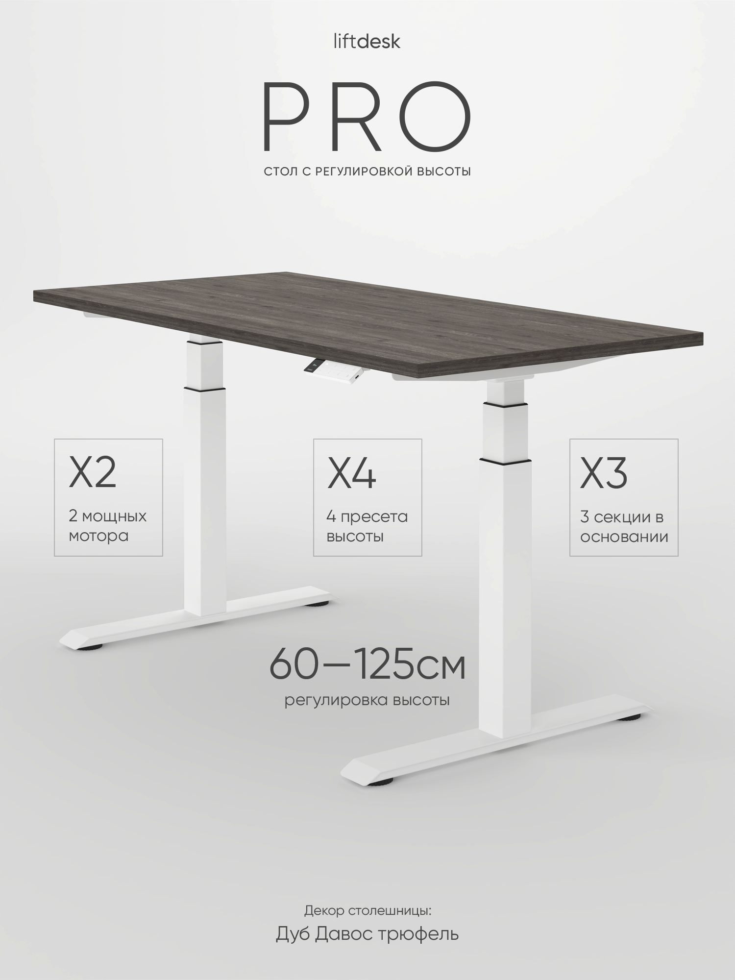 Компьютерный стол с подъемным механизмом регулируемый по высоте 2-х моторный liftdesk Pro Белый, Дуб Давос трюфель, ЛДСП Egger 138х68х2.5 см: сравнение цен, характеристики, фото, актуальное наличие и цены.