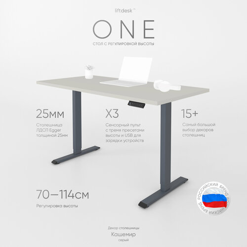 Компьютерный стол с подъемным механизмом регулируемый по высоте одномоторный liftdesk One Антрацит, Кашемир серый, ЛДСП Egger 138х68х2.5 см: сравнение цен, характеристики, фото, актуальное наличие и цены.