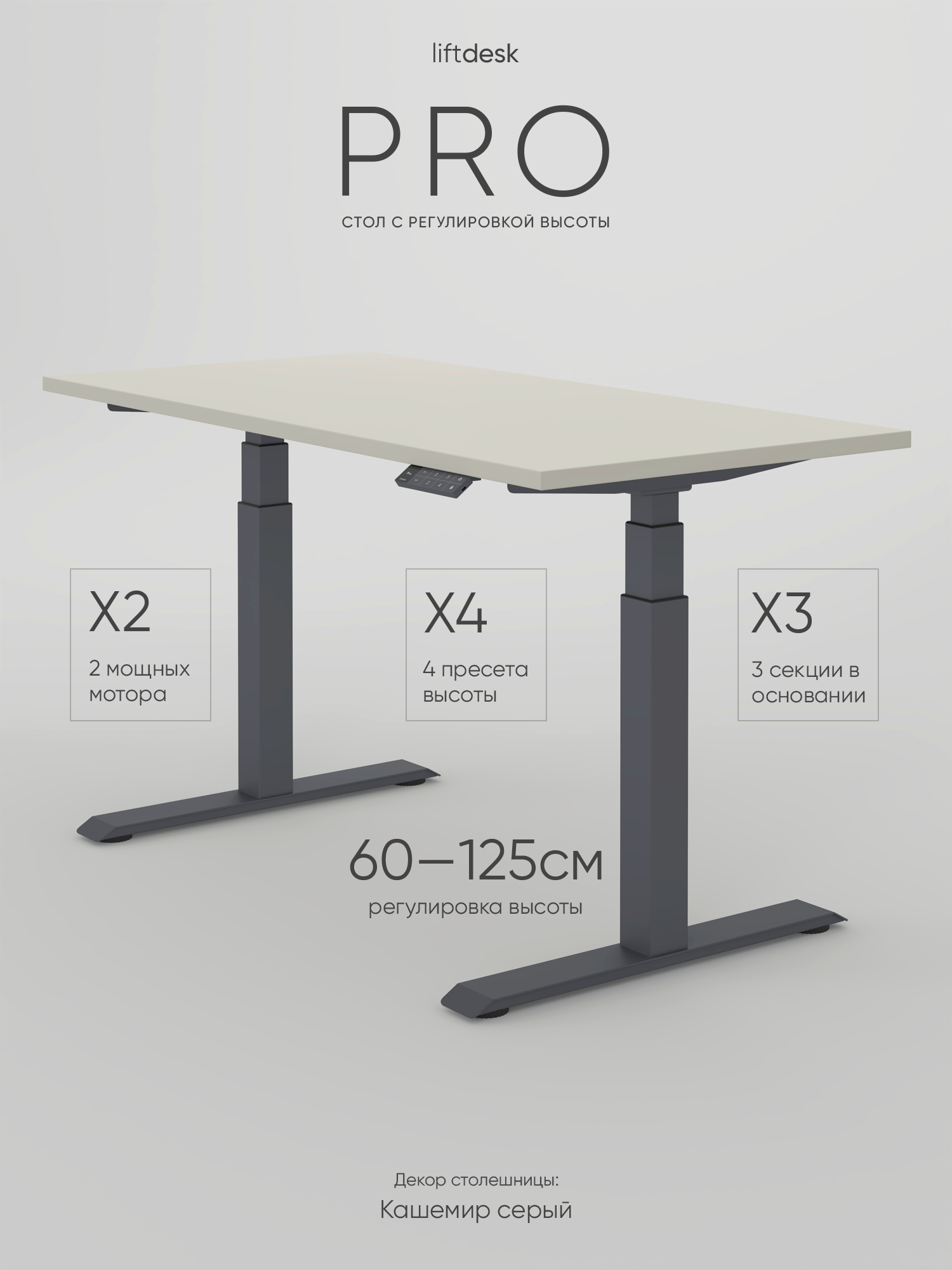 Компьютерный стол с регулировкой высоты для работы стоя сидя 2-х моторный liftdesk Pro Антрацит, Кашемир серый, ЛДСП Egger 138х68х2.5 см: сравнение цен, характеристики, фото, актуальное наличие и цены.