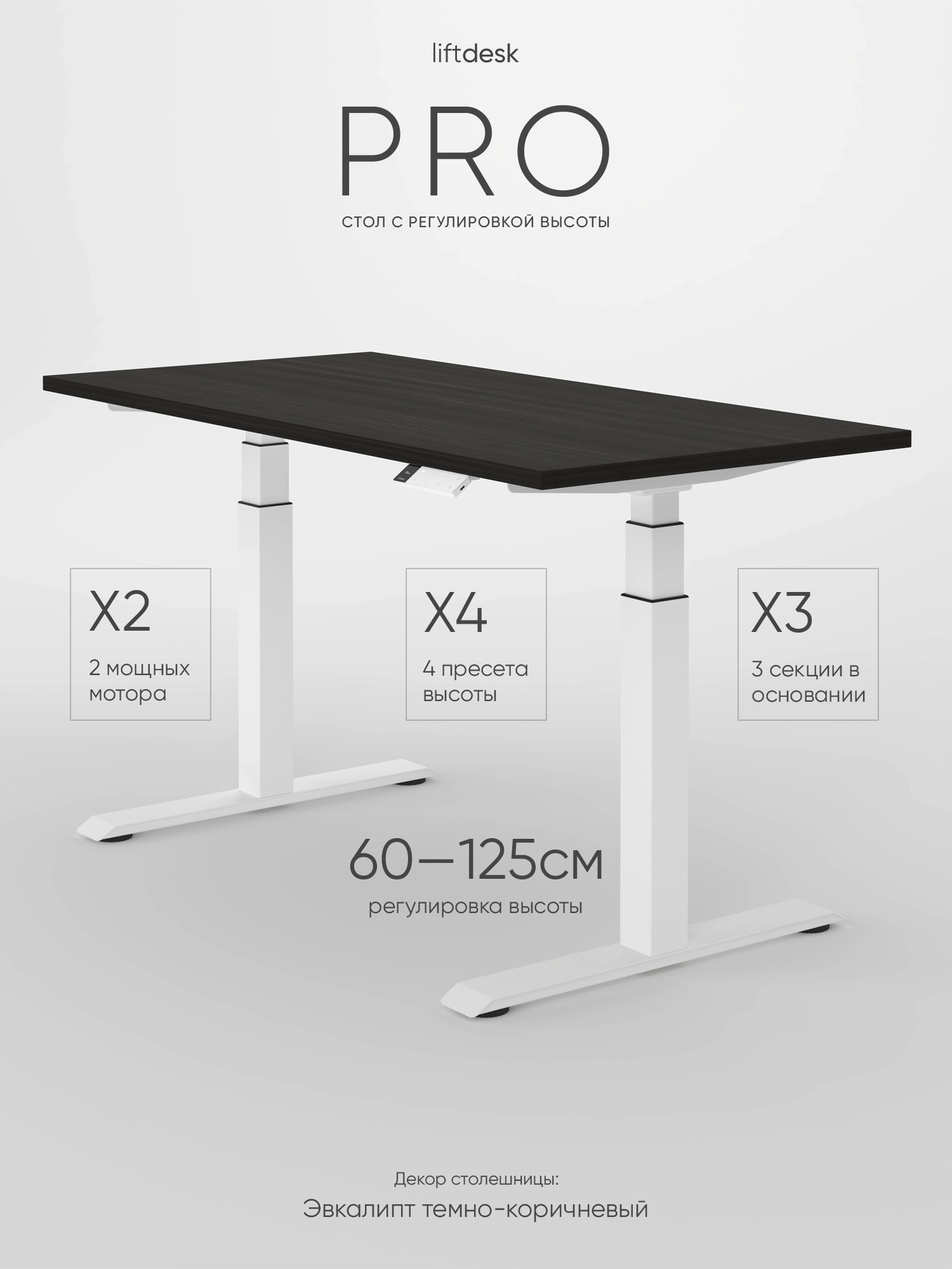 Компьютерный стол с регулировкой высоты для работы стоя сидя 2-х моторный liftdesk Pro Белый, Эвкалипт темно-коричневый, ЛДСП Egger 138х68х2.5 см: сравнение цен, характеристики, фото, актуальное наличие и цены.