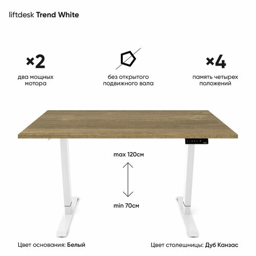 Стол компьютерный с регулировкой высоты для работы стоя сидя 2-х моторный liftdesk Trend Белый, Дуб Канзас коричневый, ЛДСП Egger 138х68х2.5 см: сравнение цен, характеристики, фото, актуальное наличие и цены.