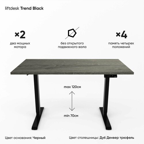 Стол компьютерный с регулировкой высоты для работы стоя сидя 2-х моторный liftdesk Trend Черный, Дуб Денвер трюфель, ЛДСП Egger 138х68х2.5 см: сравнение цен, характеристики, фото, актуальное наличие и цены.