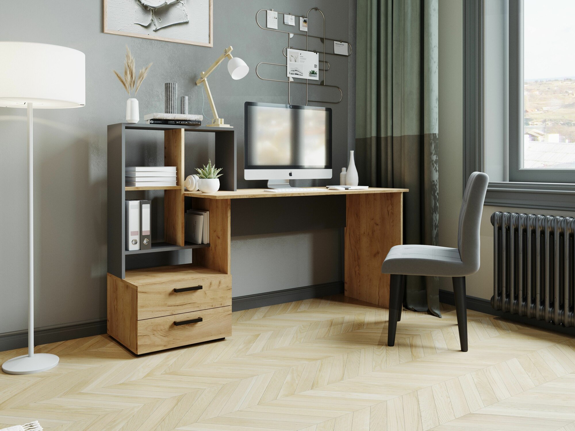 Компьютерный стол СКМ-5 графит серый/дуб крафт золотой (Микон): сравнение цен, характеристики, фото, актуальное наличие и цены.