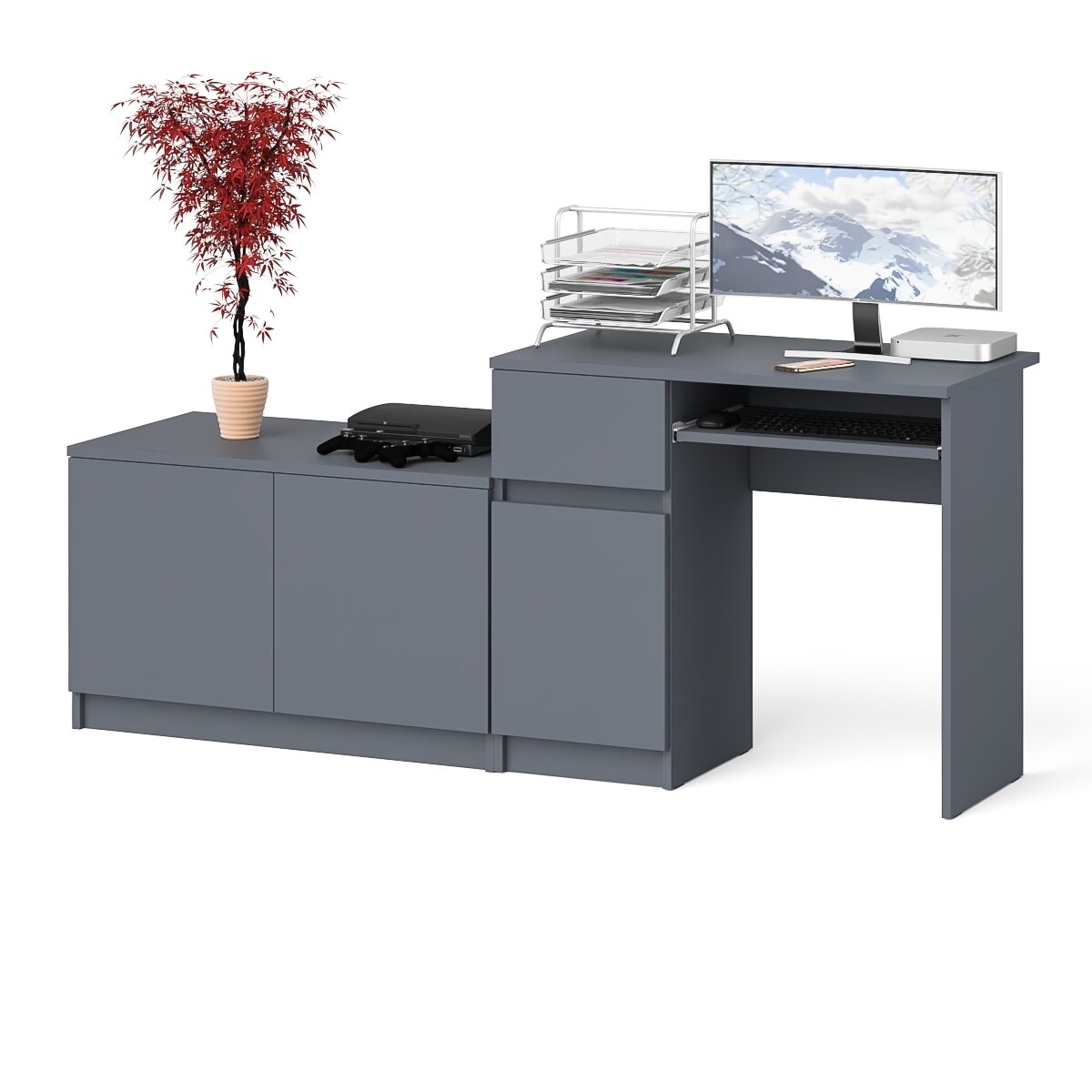 Компьютерный стол ящик и дверка СВК Мори МС-1 левый с широкой тумбой графит