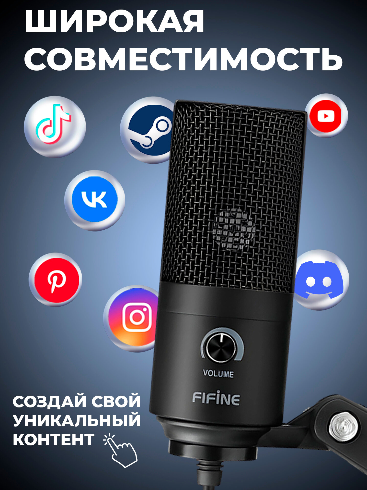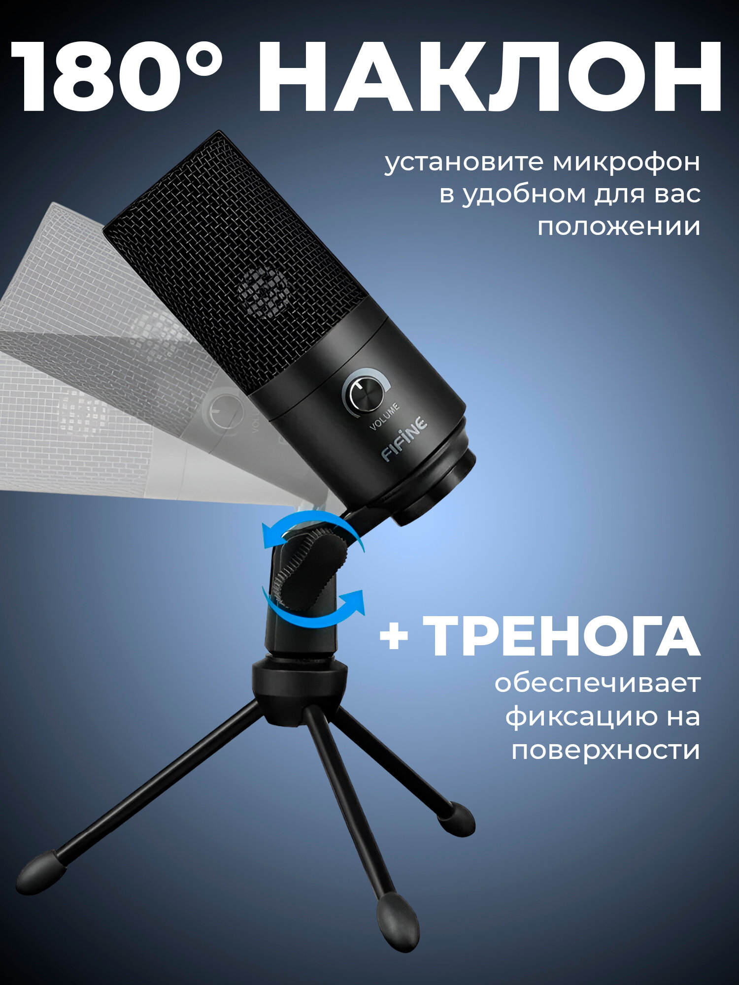 Конденсаторный микрофон Fifine K669 – звукозаписывающий прибор для любительской домашней студии звукозаписи с профессиональными характеристиками. Работает «из коробки» при непосредственном подключении к компьютеру или ноутбуку через порт USB. Не требует дополнительного питания, настольная установка. Рекомендуется для всех, кто хочет получить качественную запись звука в домашних условиях без больших затрат.