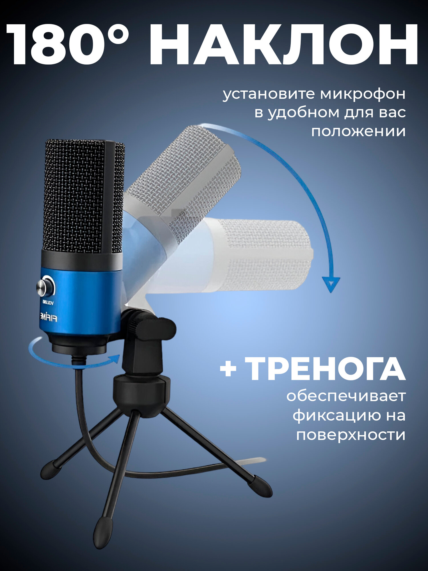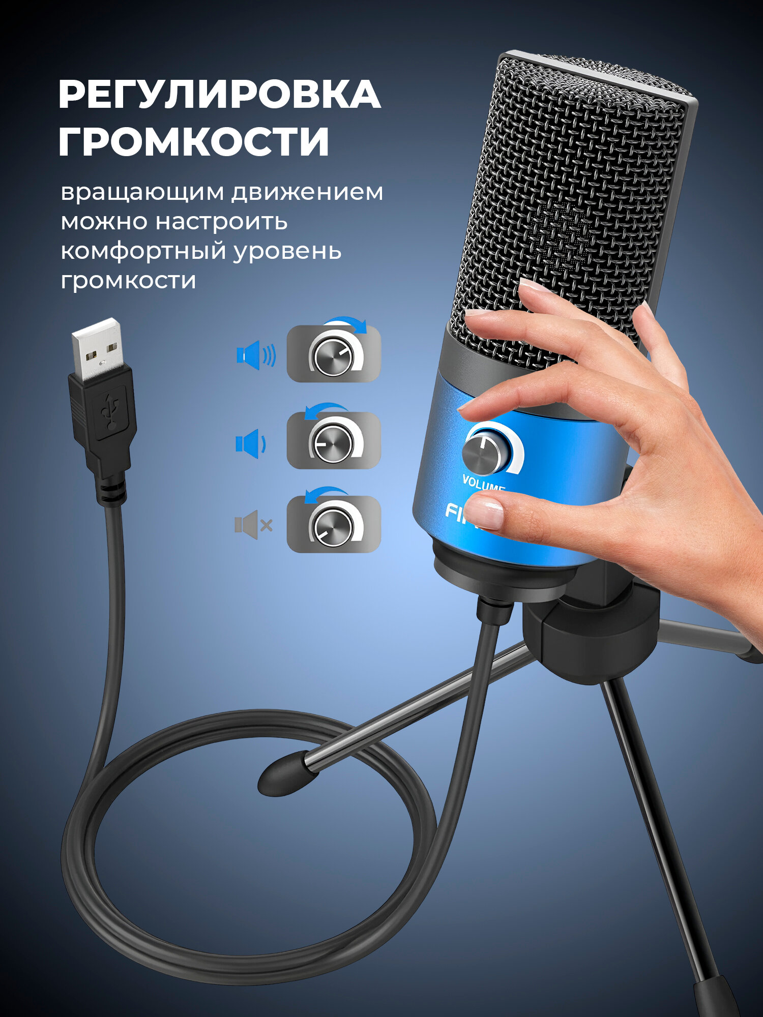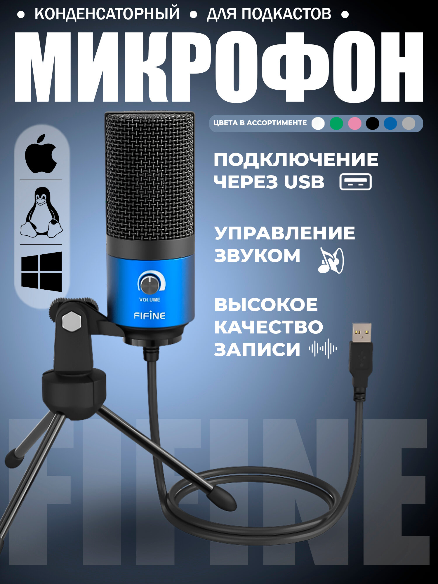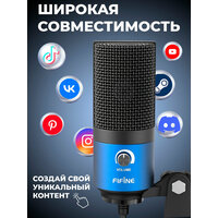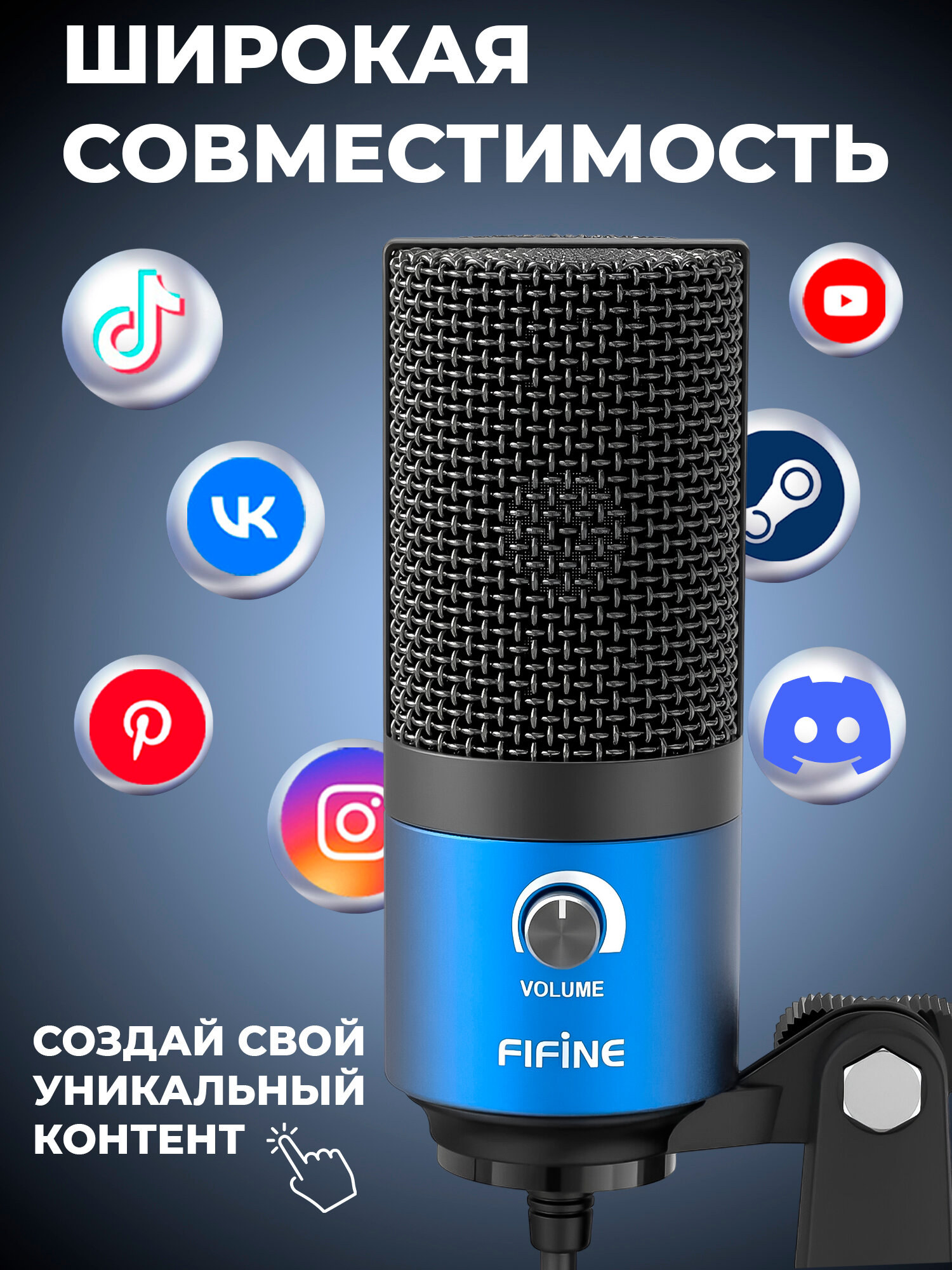 Микрофон проводной Fifine K669, настольный, конденсаторный, USB-A, синий: сравнение цен, характеристики, фото, актуальное наличие и цены.