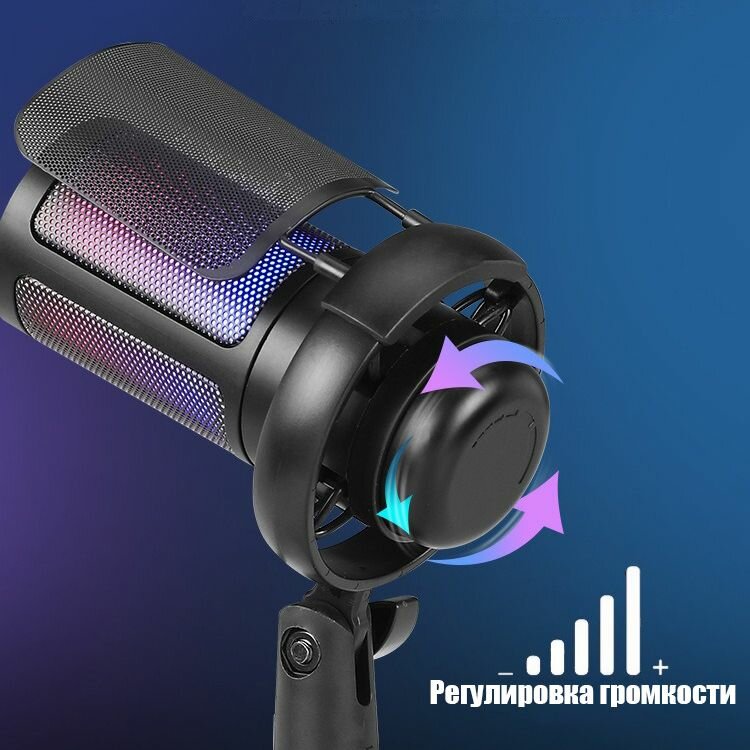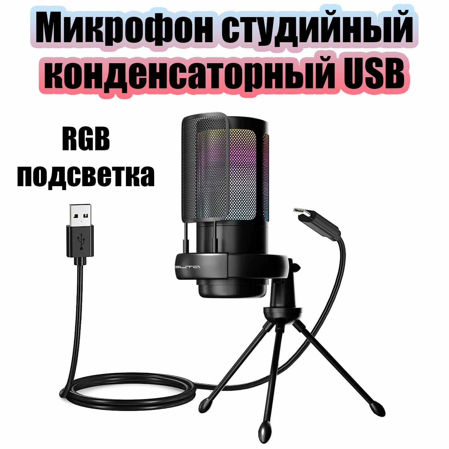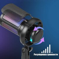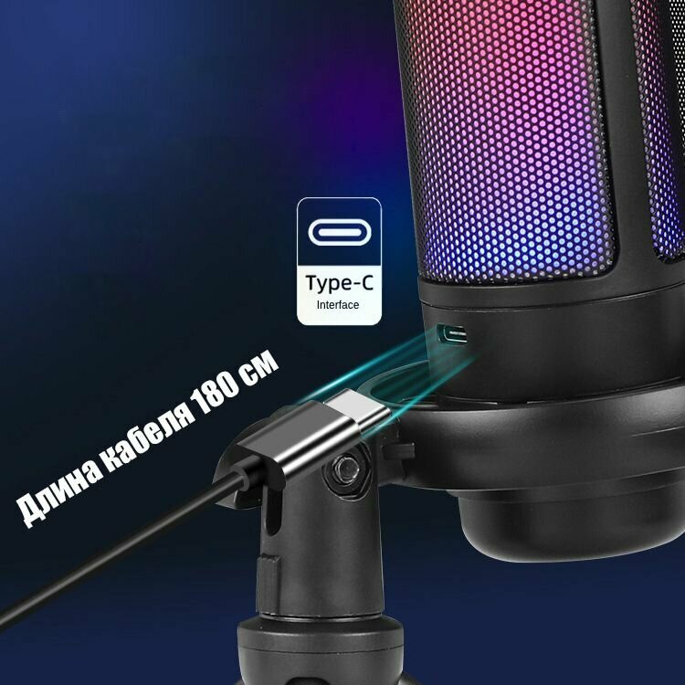Конденсаторный микрофон с RGB подсветкой, подставка в комплекте