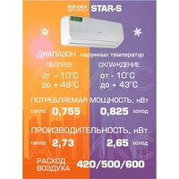 Кондиционер 9 Rovex Star ABS-09HE-S, настенный, инверторный, белый, до 27м