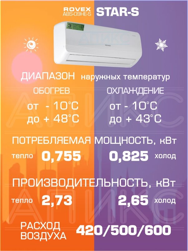 Кондиционер 9 Rovex Star ABS-09HE-S, настенный, инверторный, белый, до 27м: сравнение цен, характеристики, фото, актуальное наличие и цены.