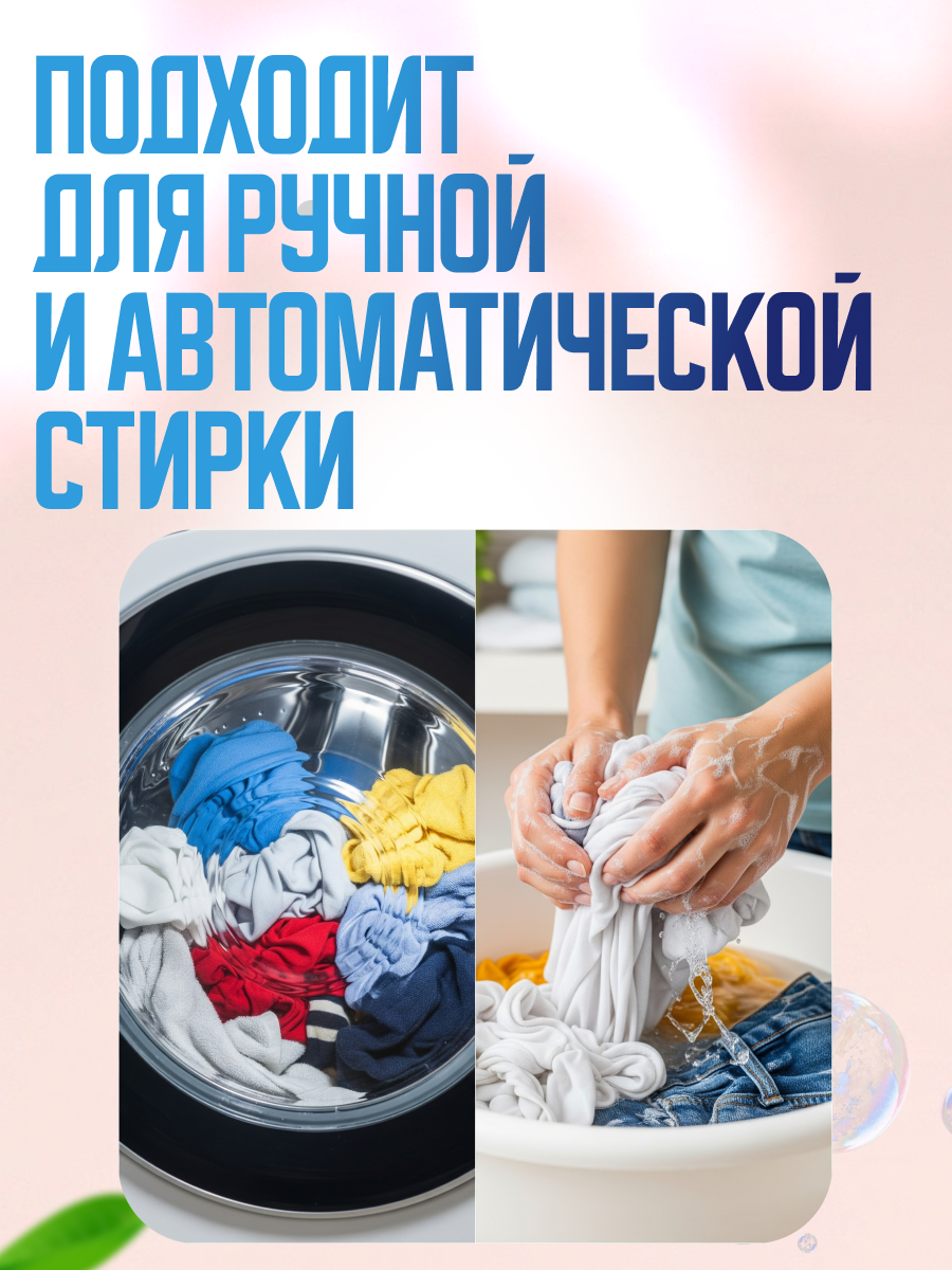 антибактериальный, антистатический, легкая глажка, смягчение ткани, устранение неприятных запахов