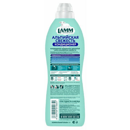 Выбирая кондиционер для белья Lamm "Альпийская свежесть", вы получаете качественный продукт, который заботится о вашем белье и создает уют в вашем доме.