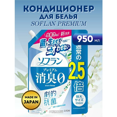 Кондиционер для белья LION SOFLAN Premium White Herb Aroma, аромат цветущего луга, мягкая упаковка с крышкой 950 мл