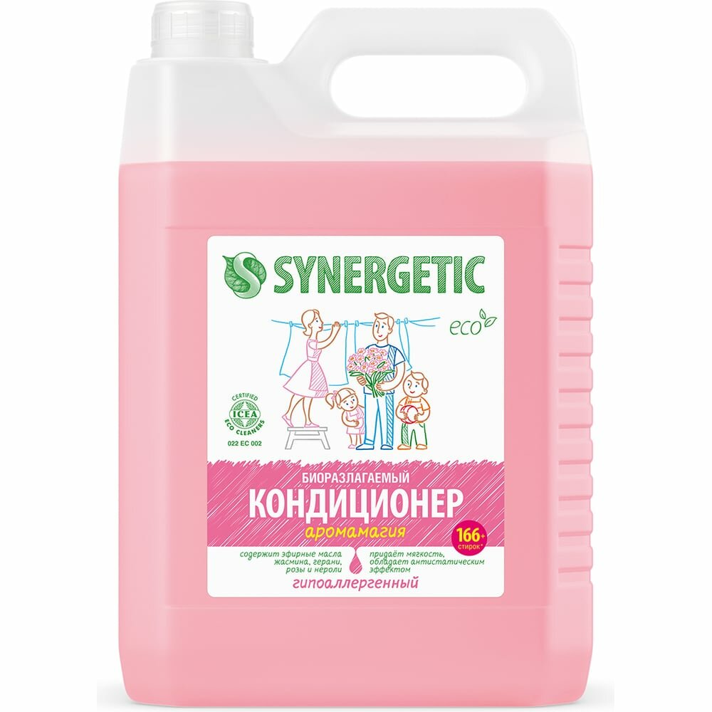 Кондиционер-ополаскиватель для белья SYNERGETIC 5 л, Аромагия, гипоаллергенный, концентрат 1605551 110500 – высокоэффективное средство, бережно ухаживающее за всеми типами ткани и придающее особую мягкость белью после стирки. Обладает антистатическим эффектом. Комплекс растительных К-тензидов обеспечивает легкую глажку белья. Гипоаллергенная отдушка с маслами жасмина, герани, розы и нероли придаёт белью нежный аромат. Подходит для ручной и машинной стирки, полностью выполаскивается из тканей. Международный экологический сертификат ICEA подтверждает биоразлагаемость, безопасность и эффективность средства. Гипоаллергенный кондиционер-ополаскиватель нейтрализует остатки средств для стирки на тканях. Безопасен для септических установок.