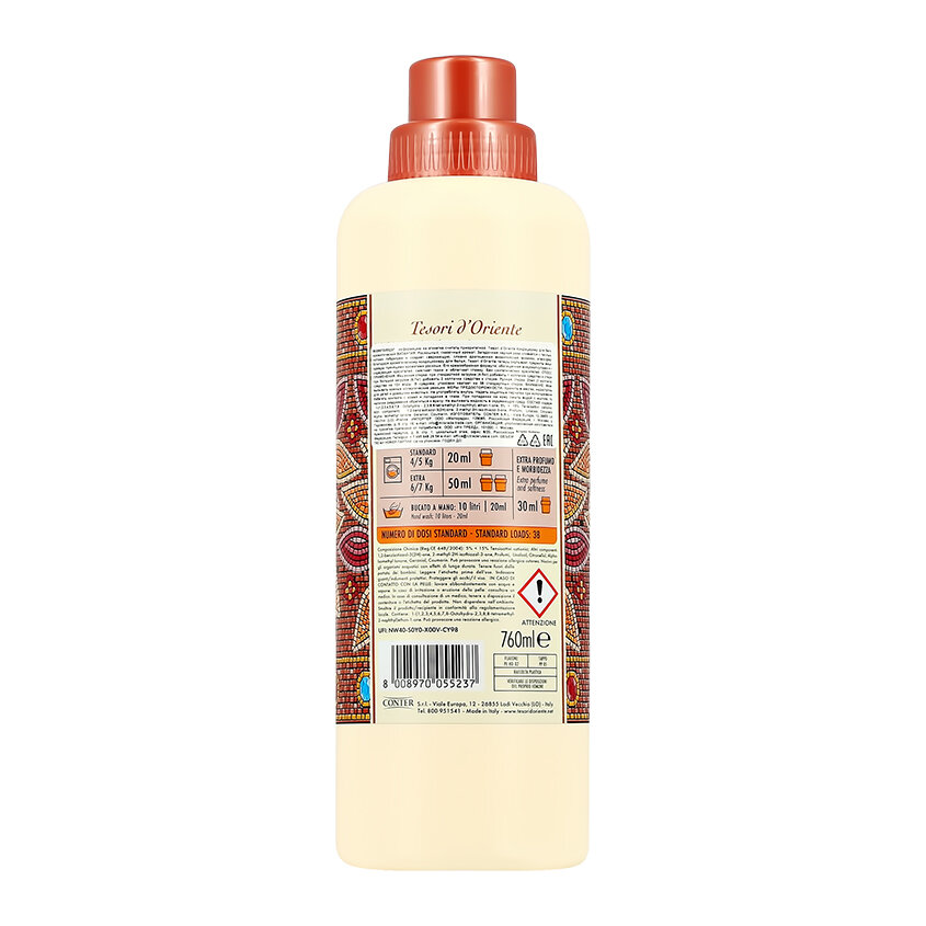 "Tesori d’Oriente Кондиционер для белья ароматический византия 760 мл приглашает Вас окунуться в мир эстетики и великолепия древней Византии. Уникальная разработка итальянских парфюмеров создает кондиционер для стирки с ярким ароматом.