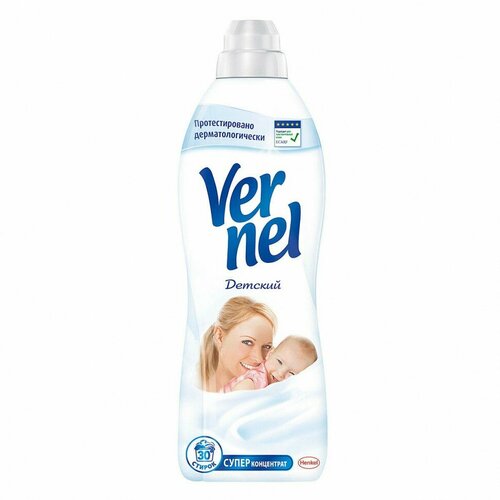 Концентрированный кондиционер для белья Вернель Детский предназначен для стирки детского белья, а также одежды людей с чувствительной кожей и склонных к аллергии.