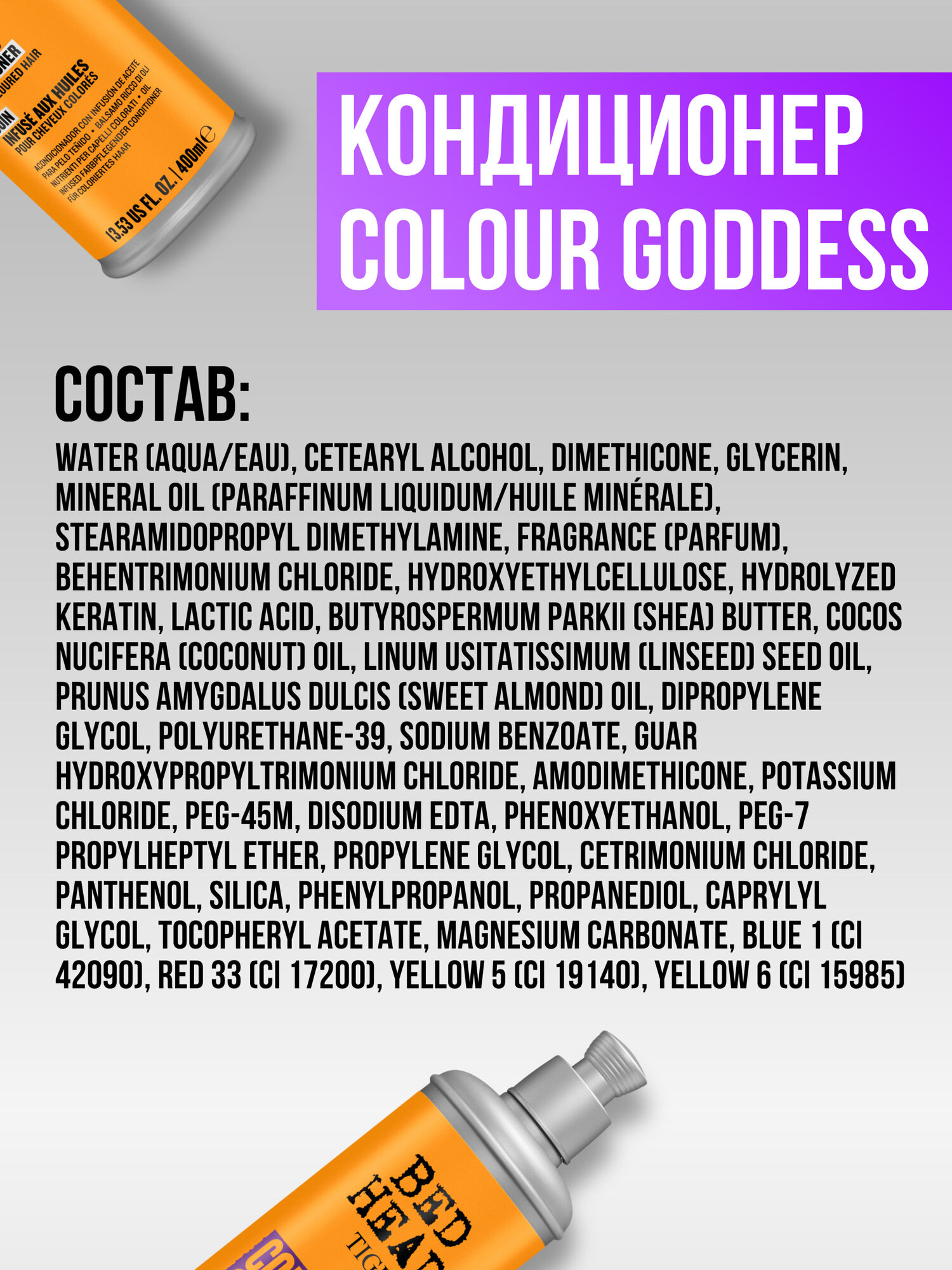 Кондиционер для окрашенных волос Tigi Bed Head «Colour Goddess», защита цвета, 400 мл: сравнение цен, характеристики, фото, актуальное наличие и цены.