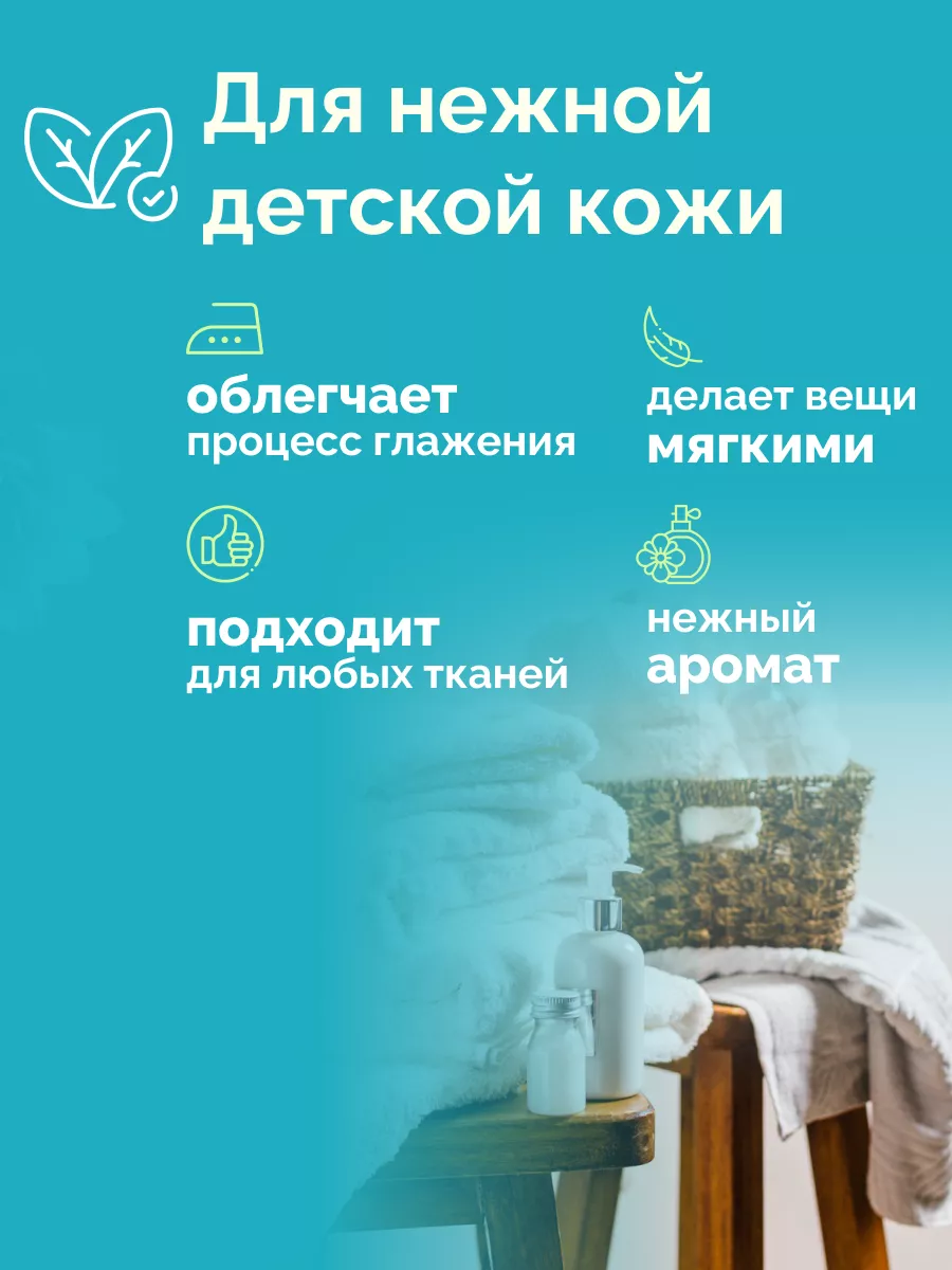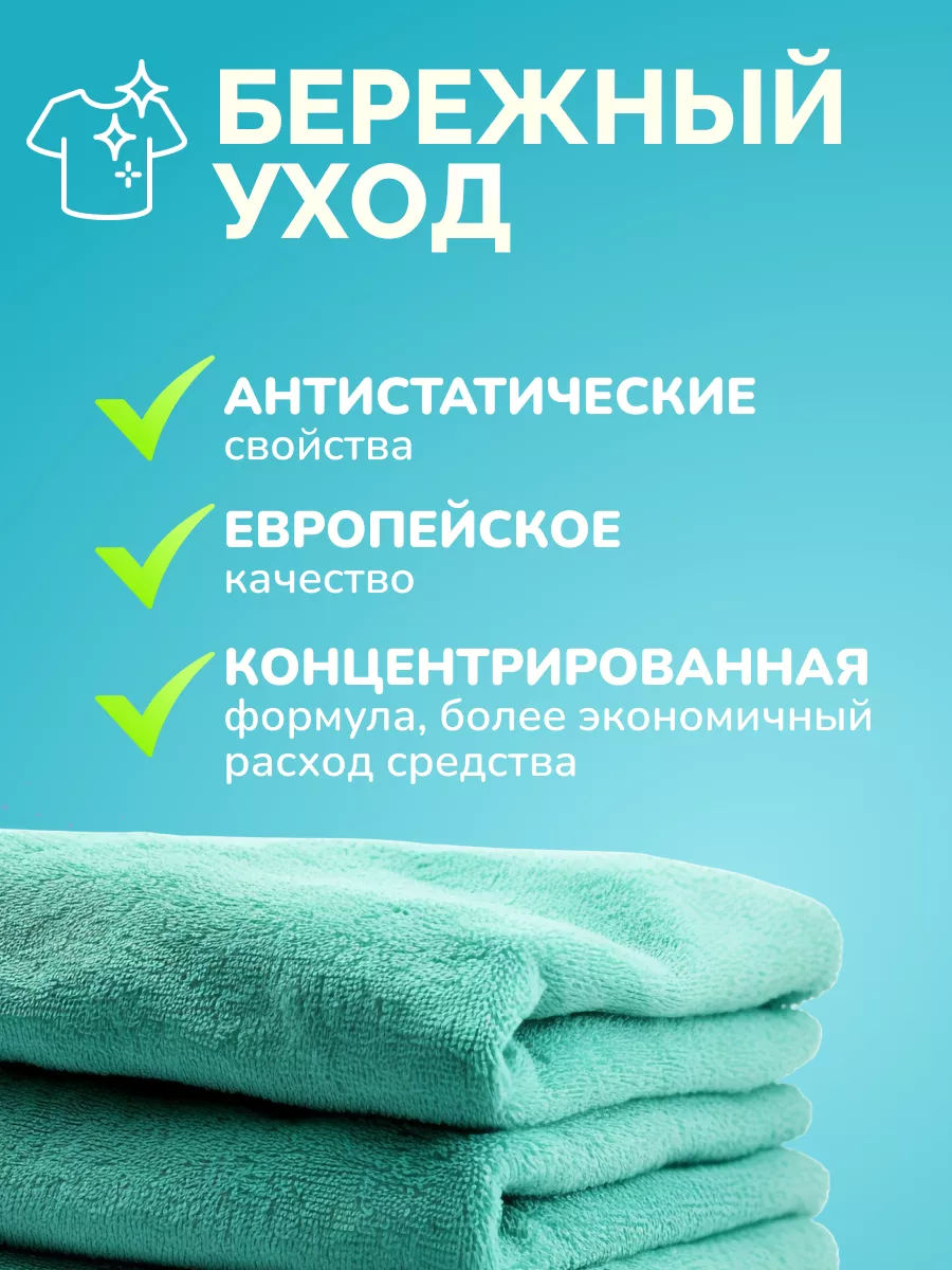 антибактериальный, антистатический, легкая глажка, смягчение ткани, устранение неприятных запахов