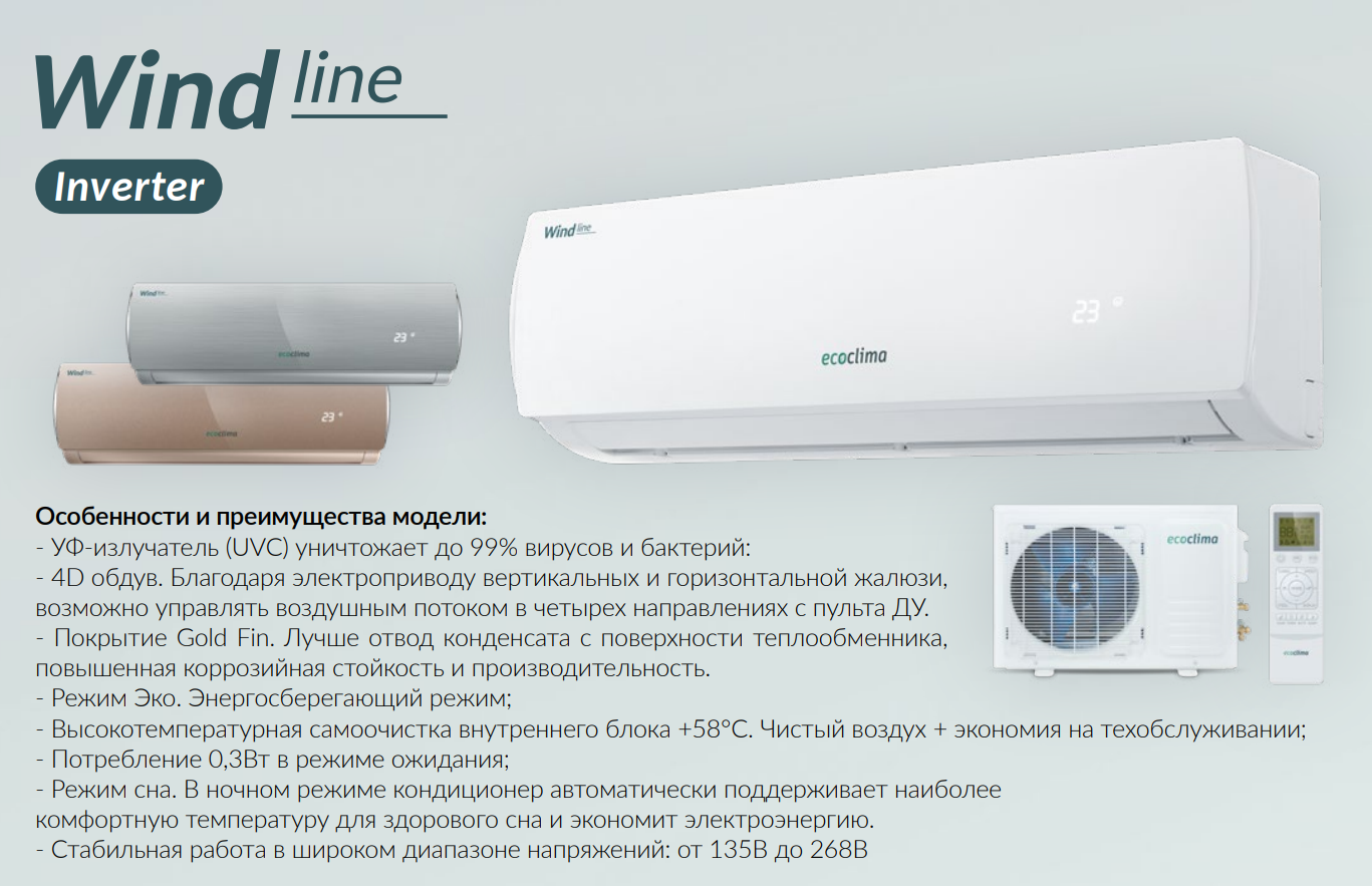 Купить Кондиционер сплит-система Ecoclima ECW/I-09QCW Wind Line, УФ-стерилизация, инверторный с доставкой по всей России.
