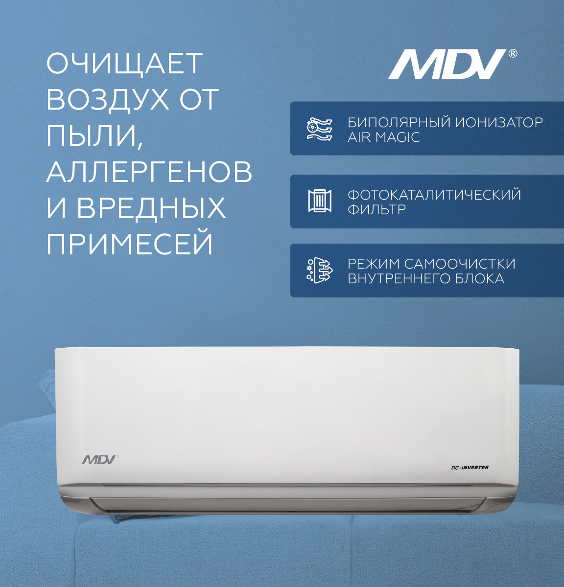 Сплит-система MDV серия INFINI Stadart Inverter (модификация 09) относится к премиальным кондиционерам китайского производства. Обеспечит оптимальный климат в помещении до 27 кв. м.
