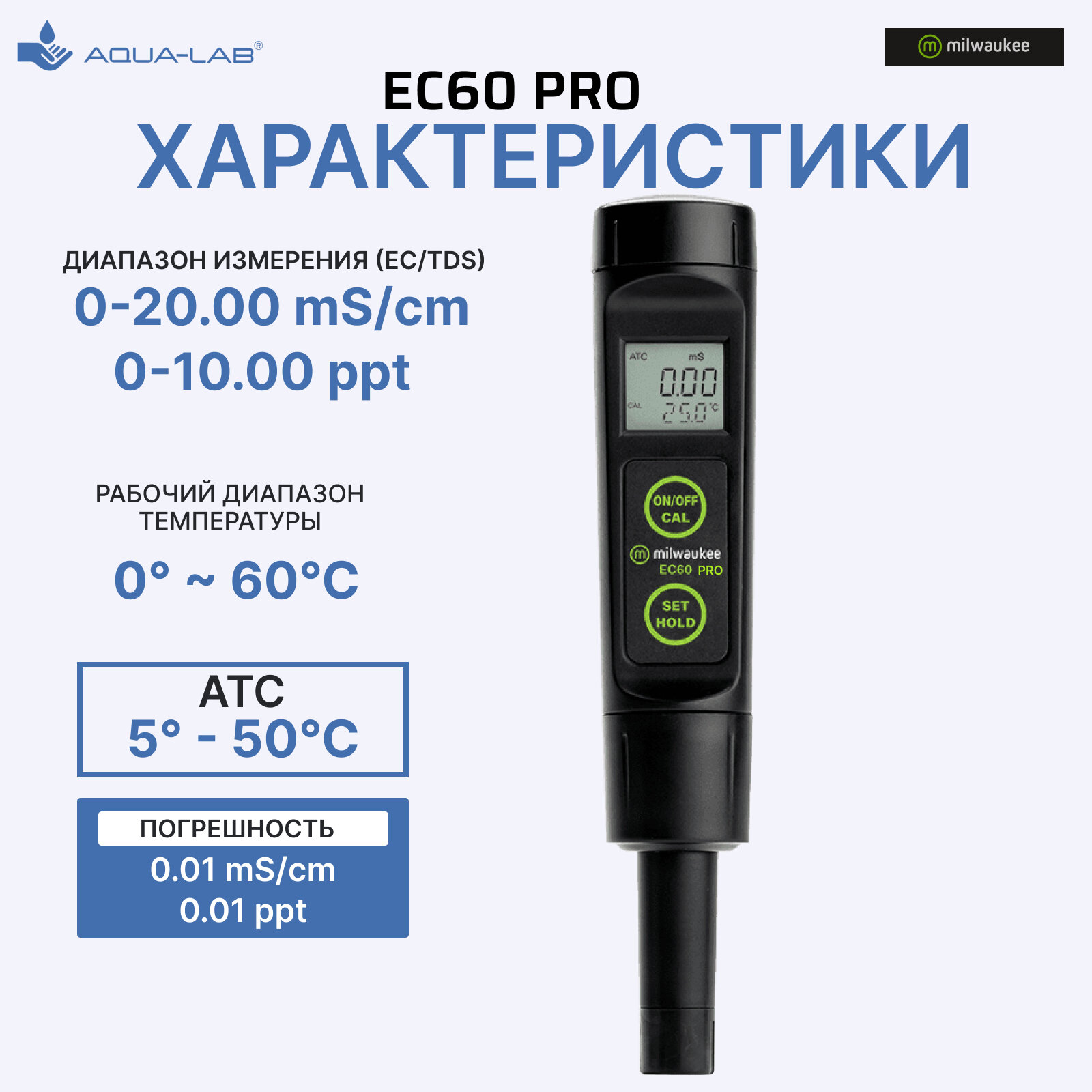 Кондуктометр анализатор электропроводности воды/ термометр и для аквариума Milwaukee EC60 PRO: сравнение цен, характеристики, фото, актуальное наличие и цены.