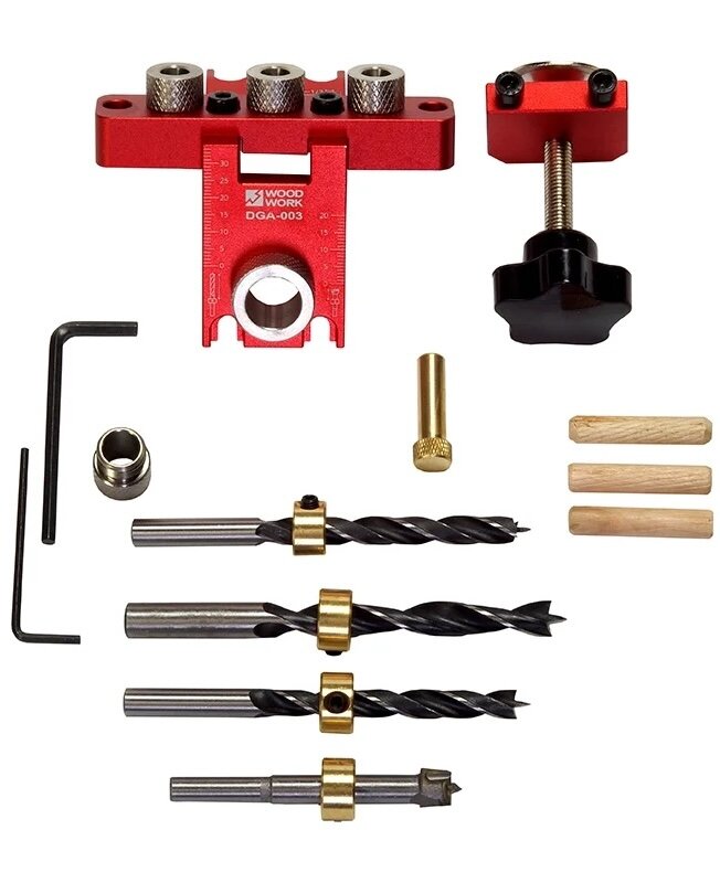 • инструмент для позиционирования сверла '3 в 1' обеспечивает точное размещение отверстий, что упрощает создание точных и профессиональных проектов по деревообработке