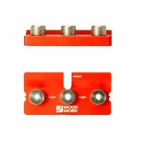• прочный и износостойкий кондуктор WOODWORK для сборки корпусной мебели с тремя втулками и комплектом сверл