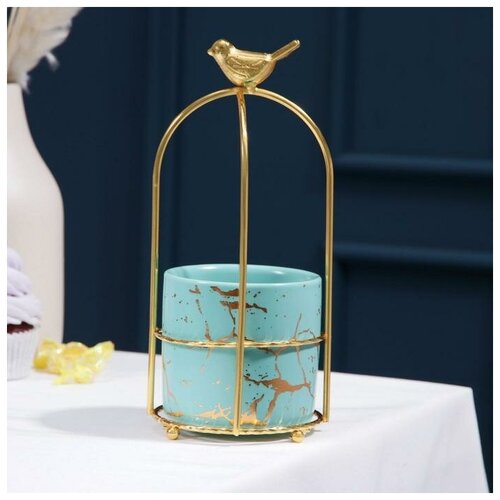 Конфетница на декоративной подставке пригодится на торжественном застолье и тихом семейном чаепитии. Емкость конфетницы выполнена из керамики, а металлическая подставка-зонтик окрашена в теплый золотистый цвет. Вазочка для конфет и мармелада станет оригинальным украшением праздничного стола. А если гостей соберется много, можно сервировать стол несколькими конфетницами - миниатюрная емкость для сладостей не займет много места.