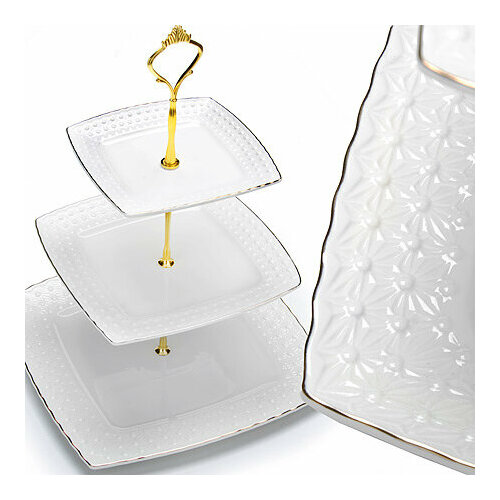 Конфетница керамическая Loraine 3-х ярусная- универсальная посуда для кухни, которая станет отличным подарком для хозяйки, подруги или мамы. Она приспособлена для хранения и сервировки конфет, а также может использоваться в офисе. Конфетница выполнена из прочного материала, который можно мыть в посудомоечной машине, что облегчает ее уход. Ее красивый дизайн стильной вазочки для конфет придадут элегантность любому столу. Вместительная и практичная, эта конфетница станет незаменимым аксессуаром на вашей кухне.