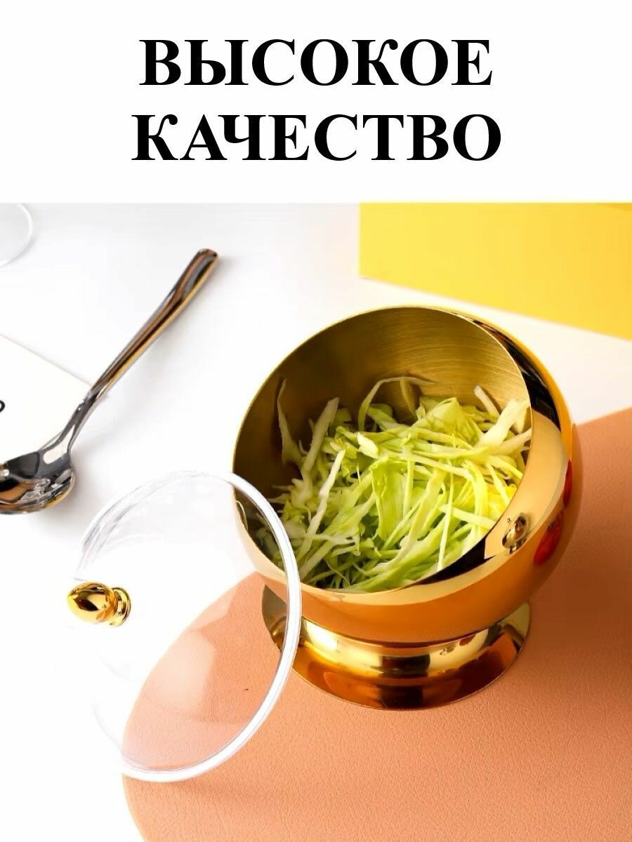 Оригинальная ваза для конфет, фруктов или орешков – практичный декор, который точно сможет украсить кухню или гостиную: стильная посуда имеет небольшие размеры, при этом достаточно вместительная и выглядит привлекательно. Посуда для конфет подходит под печенье, а также для орехов и сухофруктов. Интерьерная посуда может стоять на столике ежедневно, а может использоваться по особым случаям, на праздники – в День Рождения или годовщину совместной жизни. Ее можно наполнить и свежими фруктами, и ягодами, но тогда необходимо регулярно следить за свежестью продуктов. Модная поставка имеет размер 18 см поэтому с легкостью разместится на небольшом кухонном столике, а также на барной стойке или даже подоконнике. Она подходит не только для кухни, но и гостиной, и спальни, ведь может использоваться и для хранения сладостей, и для несъедобных, декоративных элементов и ключей. Такая декоративная посуда в офисе ваза-конфетница тоже будет смотреться на своем месте: ее можно разместить на стойке регистрации и регулярно радовать клиентов сладостями. Необычную вазу можно приобрести и для собственного пользования, но и на подарок: она точно понравится маме, бабушке, подруге и коллеге. Особого ухода посуда не требует. Достаточно регулярно мыть подставку под проточной водой. Отличное решение для дома и офиса. Форма устойчивая, толщина металла плотная. Современный дизайн в стиле хайтек. Станет красивым и удобным дополнением в офисе или на кухне. Особенности: 1. Он изготовлен из высококачественной нержавеющей стали и не подвержен коррозии, не деформируется не ломается. 2. Подходит для различных приправ, соусов, приправ, закусок, орехов, специй, кетчупа, горчицы, майонеза, кубиков льда, ломтиков лимона и т. Д. 3. Пыленепроницаемый дизайн с крышкой, легко чистится и хранится, подходит для мытья в посудомоечной машине. 4. Это идеальный выбор для семьи, ресторанов, продовольственных магазинов, столовых, вечеринок или барбекю на открытом воздухе. Большая конфетница.