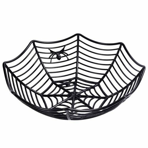 Пластиковая конфетница в виде черной паутины – обязательный аксессуар на Хэллоуин! Размер 28*8см.
