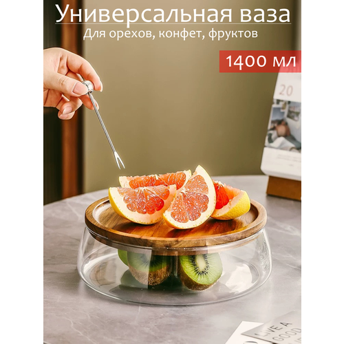 Конфетница стеклянная с деревянной крышкой из акации 1400ml, ваза для конфет, банка для печенья, ваза для орехов, менажница: сравнение цен, характеристики, фото, актуальное наличие и цены.
