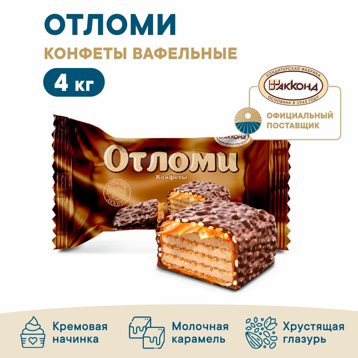 Купить Конфеты Акконд «Отломи», глазированные, молочный шоколад, 4 кг с доставкой по всей России. Конфеты Акконд «Отломи», глазированные, молочный шоколад, 4 кг: сравнение цен, характеристики, фото, актуальное наличие и цены.