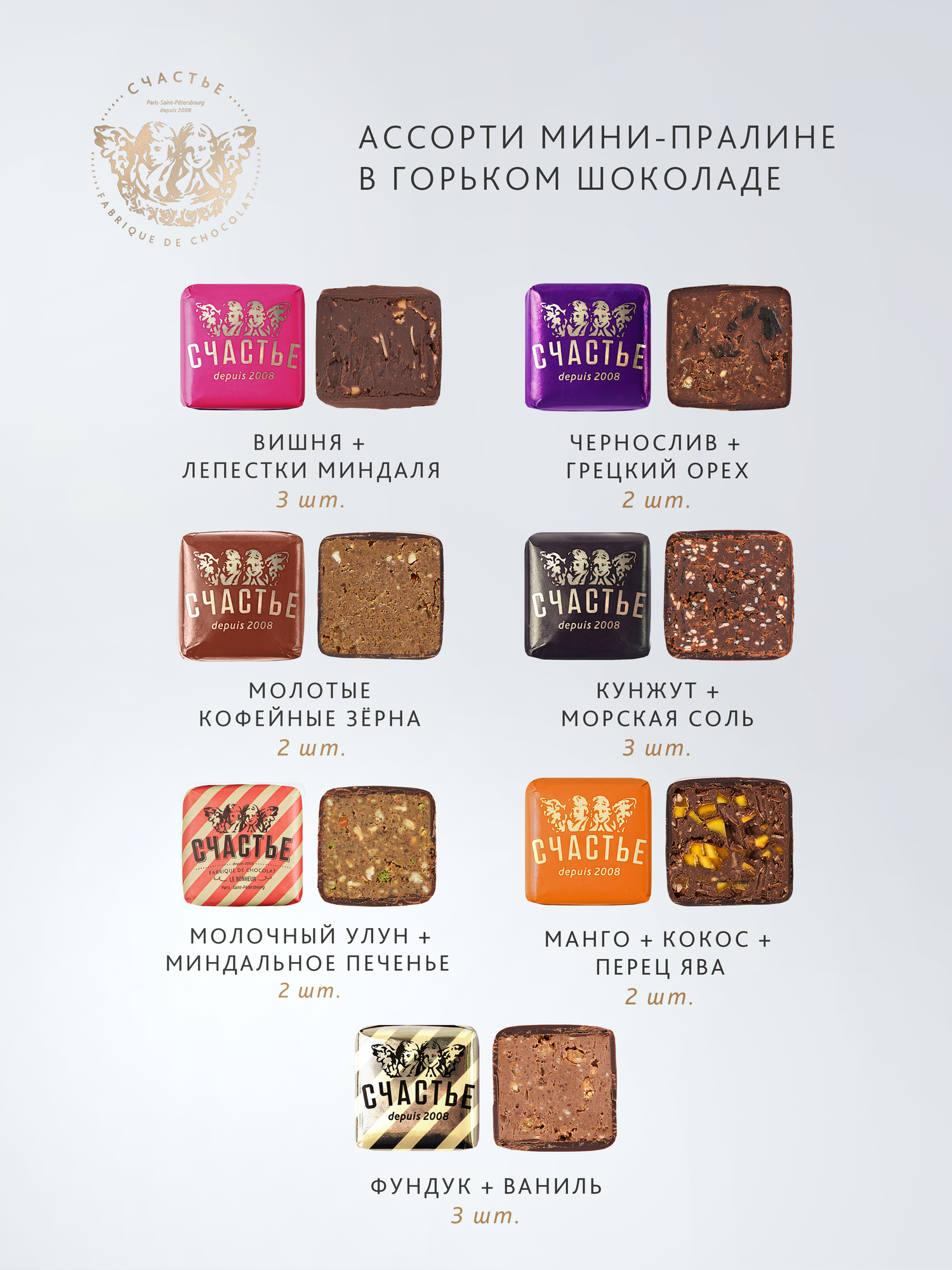 Конфеты ассорти мини-пралине счастье в шоколаде, набор из 36 шт конфет 305г: сравнение цен, характеристики, фото, актуальное наличие и цены.