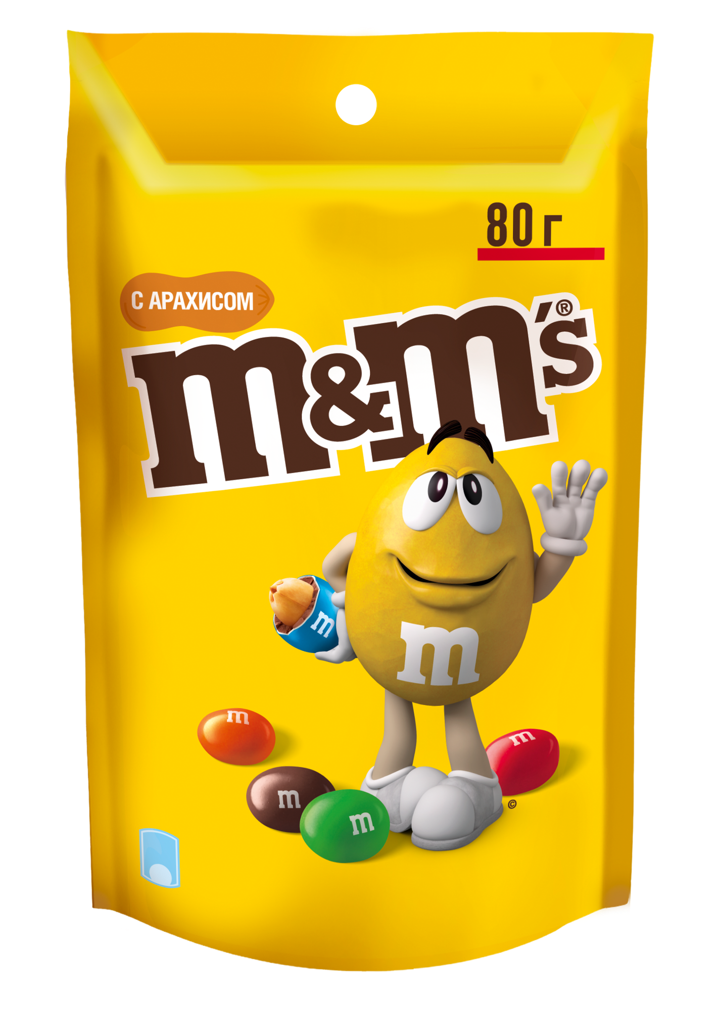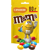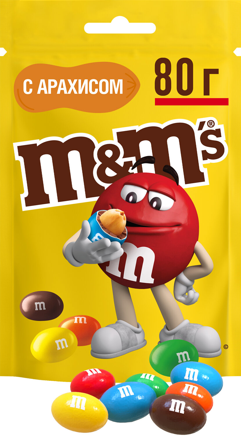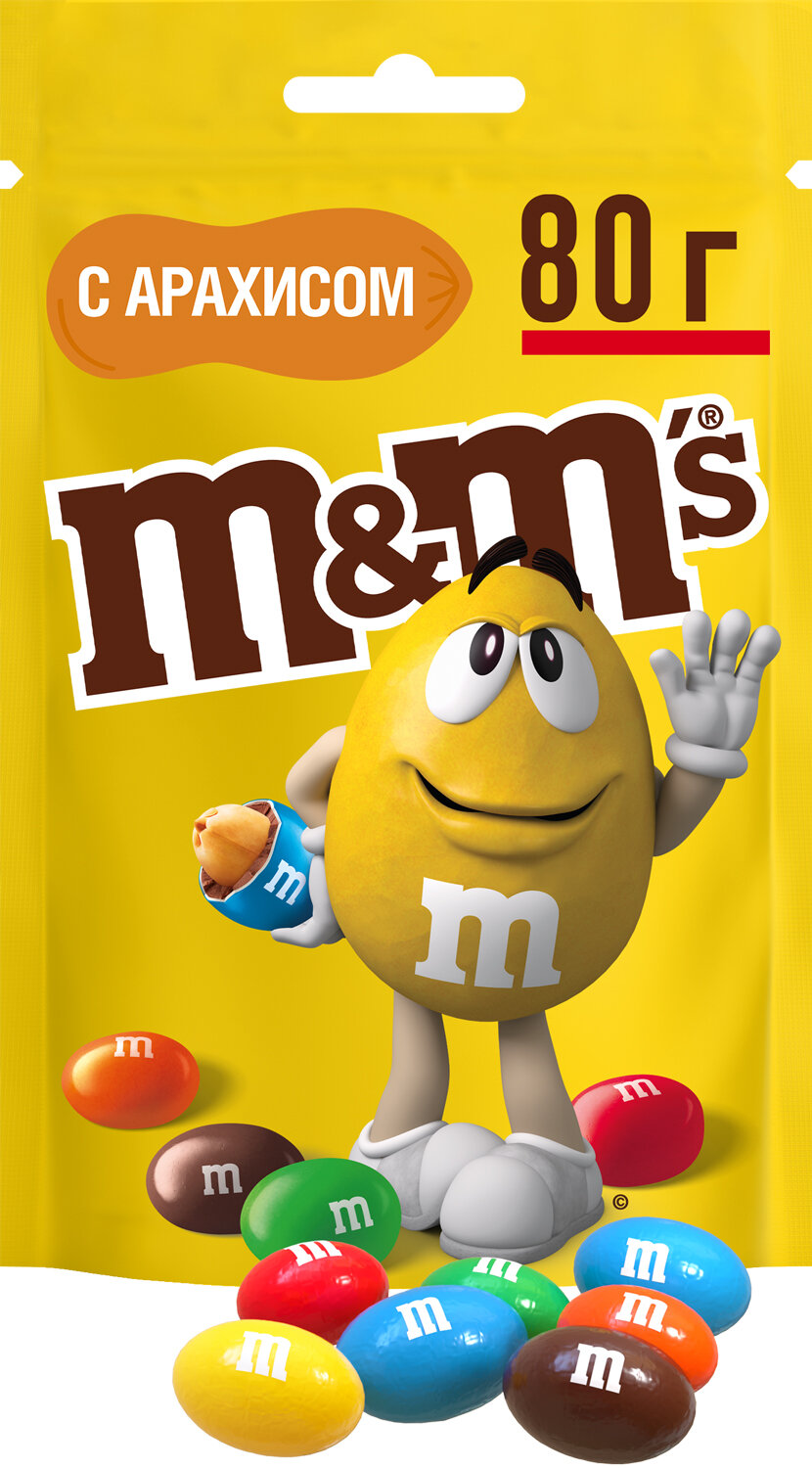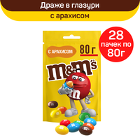 Драже «M&M's» с арахисом, 28 шт по 80 г - Конфеты с арахисом и молочным шоколадом, покрытые разноцветной хрустящей глазурью. Удобная упаковка, когдорую можно брать с собой. Состав: Молочный шоколад (сахар, какао тертое, сухое цельное молоко, лактоза, какао масло, эквивалент масла какао (масло пальмовое, масло ши), эмульгатор (соевый лецитин), ароматизаторы (ванилин, масляная кислота)); сахар, арахис, крахмал кукурузный, масло пальмовое рафинированное дезодорированное, глюкозный сироп (кукурузный, пшеничный), загуститель (декстрин), крахмал рисовый, красители (красный свекольный, куркумин, каротины, Е172, Е133, карбонат кальция), глазирователь (воск карнаубский), жир специального назначения (масло кокосовое, масло пальмоядровое).