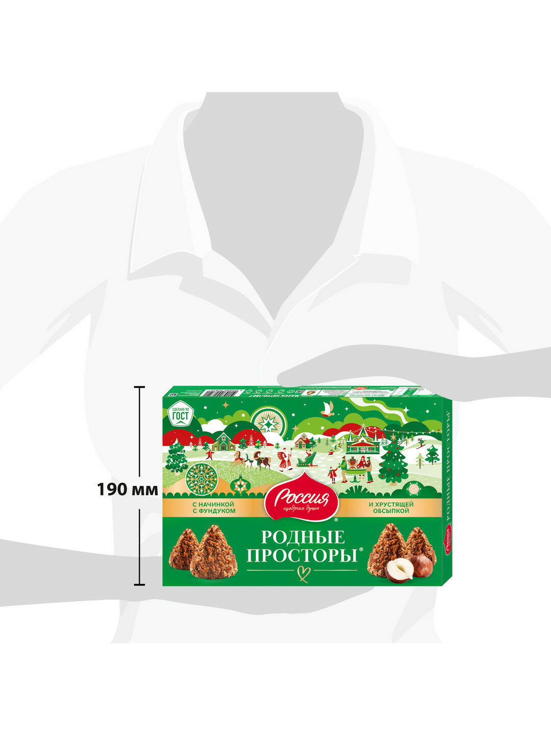Конфеты родные просторы с нежной начинкой с фундуком, покрытые шоколадной глазурью и хрустящей вафельной крошкой с какао произведены по высоким стандартам качества ГОСТ. Лимитированный дизайн упаковки станет украшением любого торжества. Дарите удовольствие себе и своим близким!