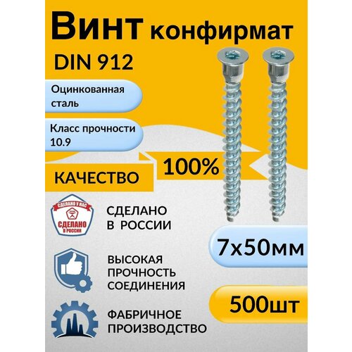 Купить Конфирмат, 7х50 мм, 500 шт, мебельный винт стяжка, головка потайная под шестигранник, евровинт с доставкой по всей России. Конфирмат, 7х50 мм, 500 шт, мебельный винт стяжка, головка потайная под шестигранник, евровинт: сравнение цен, характеристики, фото, актуальное наличие и цены.